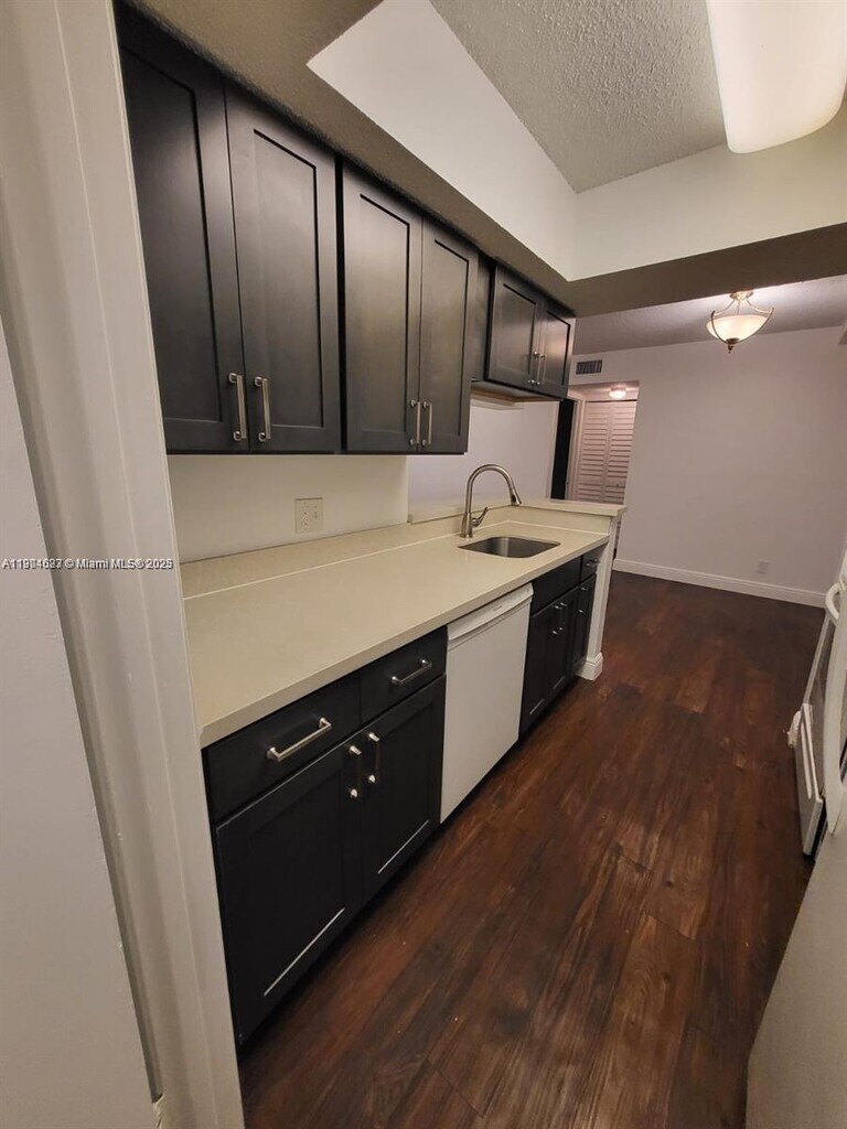 Move in ready second Floor two bedroom two bath. Large laundry room inside unit with washer and dryer. Wood floors throughout. Gated community with great amenities...pool, gym, tennis. . Quick move in , no association approval.