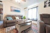 The cozy living room is the perfect spot to relax and includes a dedicated workspace for your productivity needs. The fully equipped kitchen has everything you need to prepare meals with ease. Enjoy the featured movie room—your very own mini theater—ideal for entertainment and relaxation. One bedroom offers a private bathroom, while the second bedroom shares a separate bathroom, providing flexibility and privacy. Experience comfortable living in a stylish, furnished home ready for you to move in. Tenant will be billed Utility Chargebacks: Water (Flat Rate $25.00), Sewer (Flat Rate $25.00), Trash (Flat Rate $25.00), Electric, and Gas. All Utilities are held in the landlord's name during the term of the lease agreement. Includes Internet and Washer and Dryer Available Terms: Month to Month, 3 Month, 6 Month, or 1 Year Terms Book Now Call our 24 Hour Customer Support. The Azul Casita in Farmington Managed by Wilcox Property Management | Executive Rental, Fully Furnished | NMRL #20658 - Application Fee (18+ and Older): $25.00 - Onboarding Fee (One-Time): $200.00 - Residential Package: $25.00 per month - Tenant Liability Insurance: $15.00 - Routine Cleaning: $150.00 per month (Disclaimer: All fees are subject to applicable sales tax)