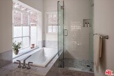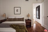 A rare, newly restored lease opportunity located in the heart of the exclusive, celebrity-favored enclave of The Oaks in Los Feliz. This 3-bedroom, 3-bathroom mid-century residence is a masterclass in style, comfort, and effortless living. With soaring 12-foot beamed ceilings enhancing an expansive living and dining space, this home blends classic architectural elements with modern refinements. It offers a seamless indoor-outdoor flow in one of Los Angeles' most sought-after neighborhoods just moments from the scenic trails of Griffith Park and the quaint, convenient FranklinVillage. Set on a verdant, private lot, this sanctuary embraces the best of California living, with new, warm-toned solid oak hardwood floors complementing a striking bricked fireplace, which anchors the airy interiors. French doors in the sunken dining area open to a sprawling brick patio, perfect for alfresco gatherings under the stars. The brand-new chef's kitchen is both elegant and functional, featuring a Wolf 36" stainless steel range and hood, Thermador French-door refrigerator, Thermador dishwasher, and custom wood cabinetry with three full pantry units. The space is complemented by an oversized bay window, a skylight, and a charming breakfast nook that comfortably seats six. Each of the three bedrooms offers its own private ensuite bath adorned with Carrara marble vanities and Carrara marble flooring. The primary suite is a tranquil retreat, featuring a spacious walk-in closet and a serene corner window arrangement. French doors lead to a secluded brick patio, your own private escape for morning coffee. The ensuite bath is a spa-like haven, with a double-sink marble vanity, a deep soaking tub, and an expansive glass-enclosed shower with dual shower heads. The second ensuite bedroom boasts garden views and generous closet space, while the versatile third ensuite bedroom with its beamed ceiling, cozy reading nook, and dual-exposure windows is ideal as a guest suite or home office. Beyond the interiors, the home continues to impress. The finished 430-square-foot garage, with its new terrazzo-style epoxy floors, presents endless possibilities. A separate 100-square-foot finished storage room adds valuable flexibility. The fully fenced and gated backyard is a private oasis, featuring a brick patio framed by lush landscaping and multiple lounging areas. No detail was overlooked in the home's comprehensive renovation: all-new copper plumbing, atop-of-the-line HVAC system, a Wi-Fi-enabled security system, and all-new recessed lighting, sconces, and designer fixtures throughout. In a neighborhood renowned for its architectural gems and multimillion-dollar estates, 5657 Valley Oak offers a rare opportunity to lease a turnkey mid-century masterpiece. Stylish, sophisticated, and effortlessly livable, this is The Oaks at its finest. Lease term of 13+ months. MLS# 25589763