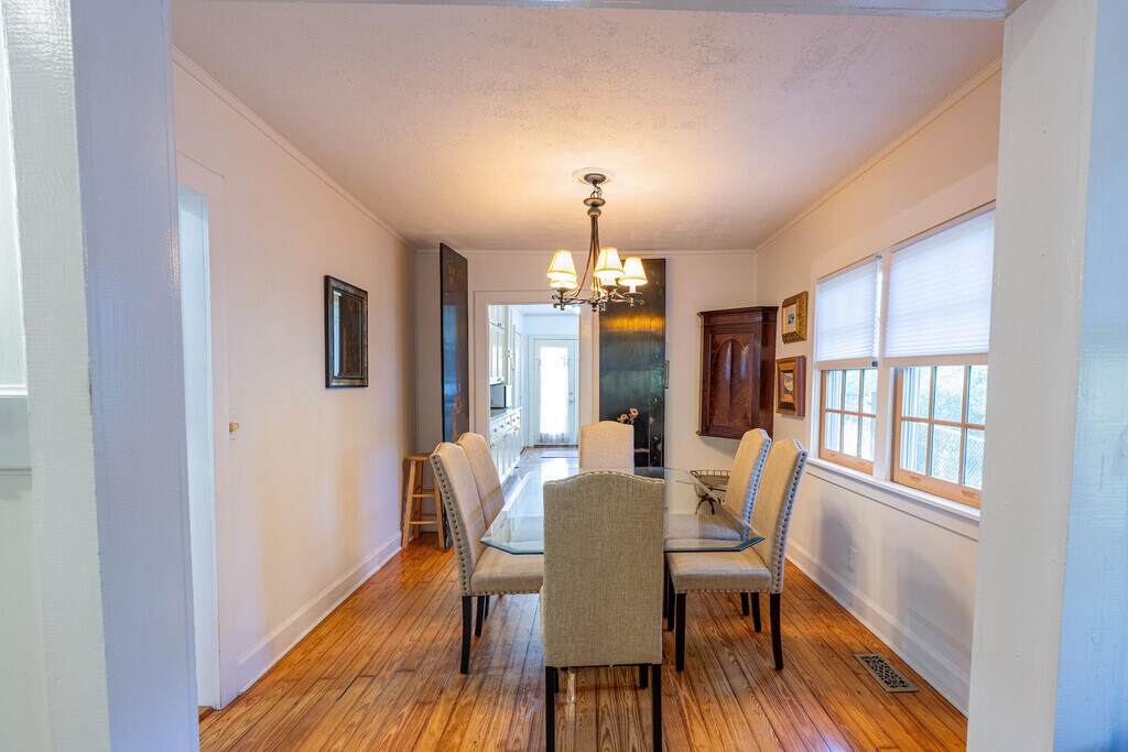 ''The Green House.'' Wonderful peaceful furnished cottage in superb location in Aiken's downtown historic district. Updated kitchen and bathroom. New siding,& windows in 2024. Wood floors. Living room,office,library,dining room and kitchen. Large stone patio with pergola. Laundry & pantry beside the kitchen. Covered front porch. Dog door & fenced yard. 1/2 block to Hitchcock Woods,with 2200 acres of riding & hiking trails. Cable TV,internet,and landscaping provided. Natural gas & electricity from Dominion Power (included in rent; gas/electricity is capped at $200 with tenant paying any overage). Natural gas for heat and for cook top. City water and trash pick up provided. Fireplace is decorative only. References required. Owner is a licensed Realtor. Property is available May 1,2024,short term or long term. One dog might be allowed with owner's approval (no cats). Security deposit $2500 (+ $200 pet deposit) and $200 cleaning fee at departure. References from previous tenants are available.) This lease is available through December 10,2026.