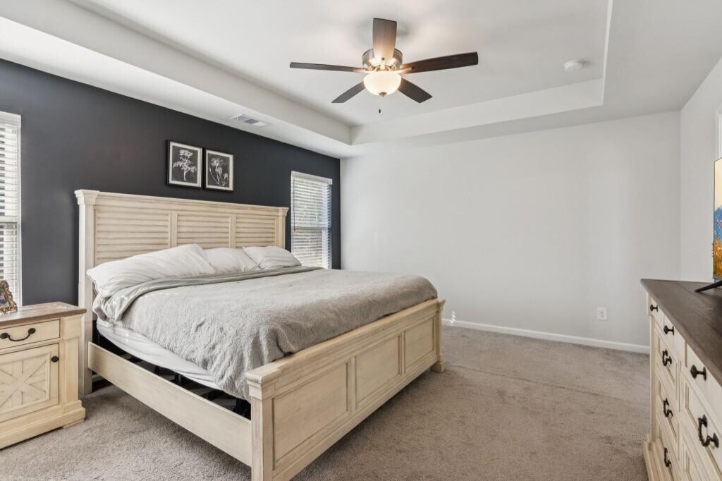 Start your new year in this beautifully built 2023 Craftsman home,available January 15. This spacious 3-bedroom,2.5-bathroom residence boasts an inviting open-concept layout with high ceilings and an abundance of natural light. The bright living area flows seamlessly into the gorgeous kitchen,complete with an oversized island,stainless steel appliances,granite counters,and ample cabinet storage,along with a full eat-in dining space. A large pantry and a convenient half bath complete the main floor. Upstairs,the oversized primary suite boasts a tray ceiling and a spa-like bathroom complete with dual vanities,a soaking tub,and a separate shower. Two additional bedrooms share a full bath,and a large bonus/flex room provides the perfect space for a home office,playroom,or media room. The laundry room is also located upstairs and includes a washer and dryer. Enjoy a newly fenced-in backyard that offers excellent privacy and a perfect setting for entertaining,relaxing,or letting pets play,because pets are welcome here! With modern finishes throughout,a two-car garage,and thoughtful details in every room,this home delivers comfort,style,and convenience. Located minutes from I-85,US-441,shopping,restaurants,and Tanger Outlets. A free 55" Smart TV is included for an approved applicant with a move-in on or before February 28,2026.