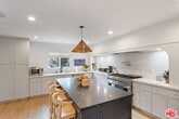 Tucked in one of Baldwin Hills' most peaceful pockets with epic views, this newly redesigned 4-bed, 3-bath home brings together warmth, sophistication, and effortless flow. The open layout draws you in with a dramatic mid-century-inspired fireplace and seamless indoor-outdoor connection. The kitchen is a showpiece custom cabinetry, a waterfall island wrapped in black soapstone, and an 8-burner range ready for dinner parties or quiet nights in. The primary suite feels like a boutique hotel, with a built-in buffet, walk-in closet, and a spa-style bath featuring a soaking tub, marble counters, and limestone floors. Every space has its own story from the checkered stone office and laundry floors to the designer lighting and tailored millwork. Outside, the private backyard is calm and inviting, surrounded by new landscaping and easy access from both the living room and bedroom. With a two-car garage, EV-ready setup, new systems throughout, and views that stretch across the hills, this home captures the best of design and comfort in one of L.A.'s most classic neighborhoods. Conveniently located next to easy free way access, close to the airport, beaches, metro stops, etc. Not to miss! *Lease term available for 13 months or greater.* MLS# 25618561