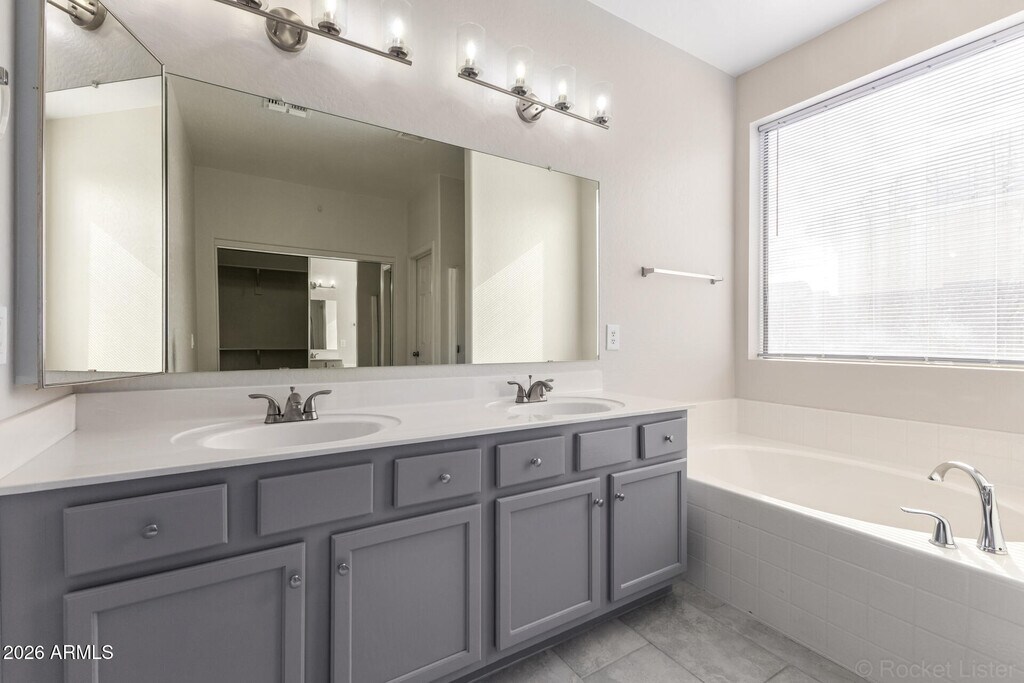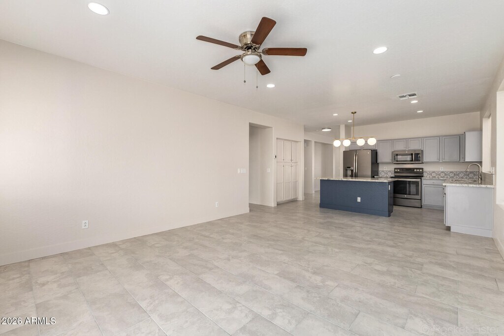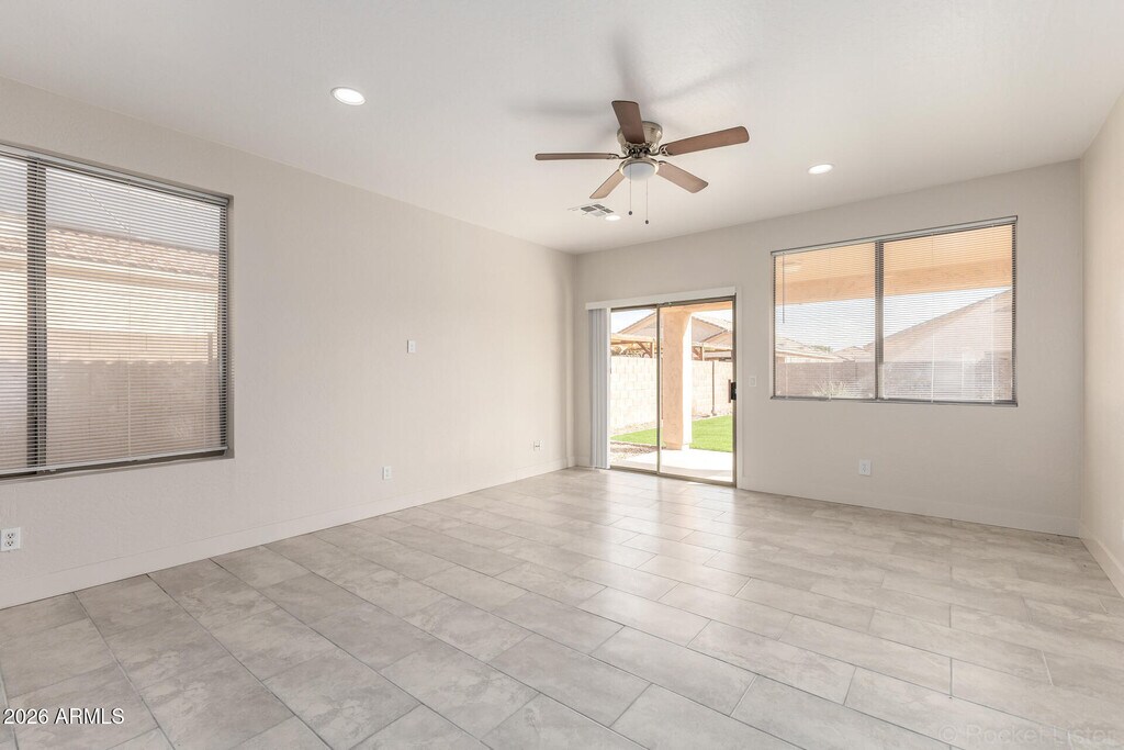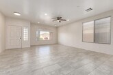Home,sweet home! This charming 3-bedroom residence welcomes you w/ a 2-car garage,an RV gate,a low-maintenance yard,& an inviting front patio. Discover a serene living room w/ high ceilings,a soothing palette,blinds,& durable tile flooring. Spend enchanting evenings w/ loved ones in the great room,complete w/ sliding door access to the backyard for seamless indoor-outdoor living. The gourmet kitchen comes w/ granite counters,ample cabinetry,stainless steel appliances,chic light fixtures,& an island w/ a breakfast bar. Double doors lead to the primary bedroom,featuring soft carpeting,an ensuite w/ dual sinks,& a walk-in closet. Enjoy peaceful afternoons in the lovely backyard,which offers a covered patio & a manicured lawn for outdoor activities. Don't miss this gem!