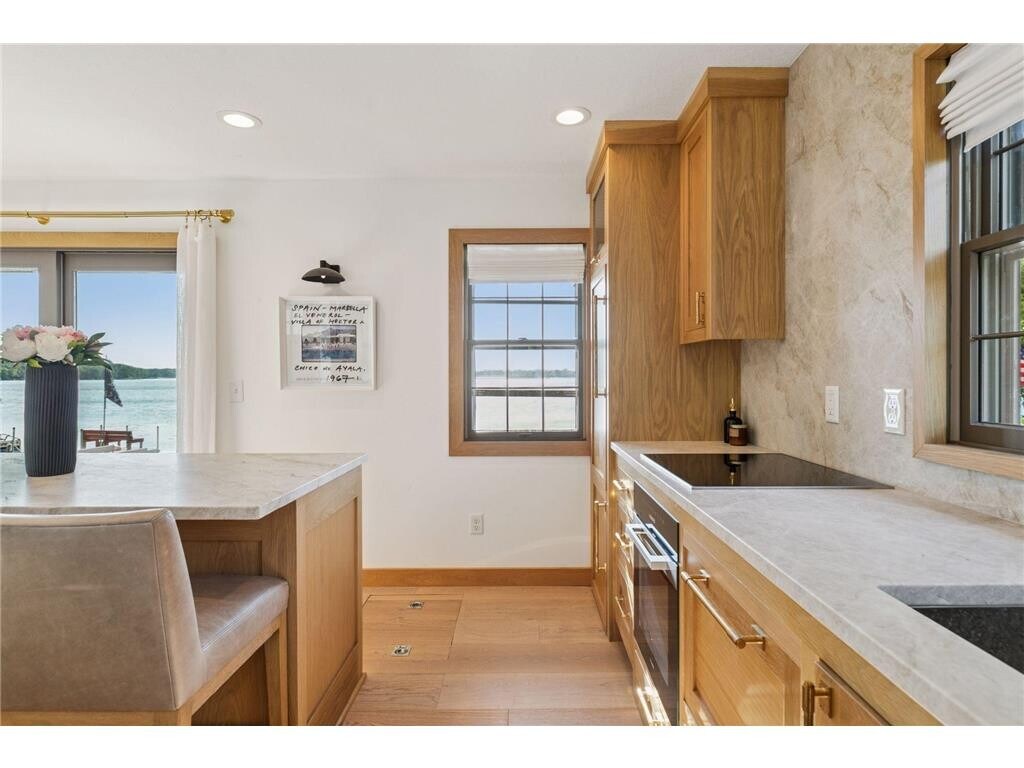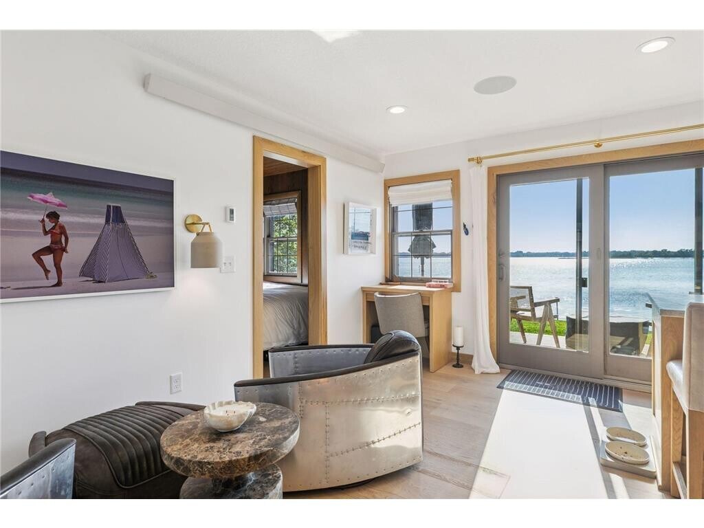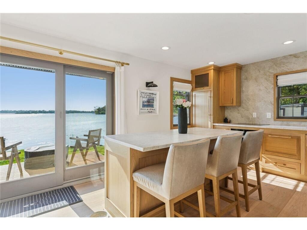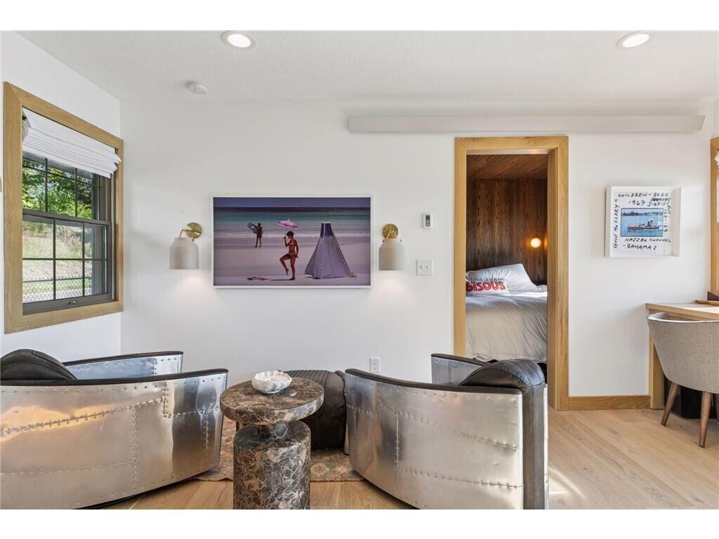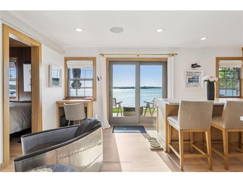 Escape to a private, luxury lakefront retreat just 30 minutes from Minneapolis. This beautifully updated home blends a cozy Northern cabin feel with upscale finishes, stunning west-facing sunsets, and total privacy just steps from your own lake. Only two miles from White Bear Lake, it’s perfect for a night out or a quiet stay in. Inside, enjoy a seamless indoor-outdoor living space with a walk-out deck, high-end furnishings, Sonos sound system, and ambient lighting throughout. The gourmet kitchen features premium appliances, quartzite countertops, and a built-in espresso machine. A king Sleep Number bed, lakeview workspace, and in-unit laundry add comfort for any stay. Outdoors, relax with two fire pits, multiple seating areas, and breathtaking sunset views over the lake.