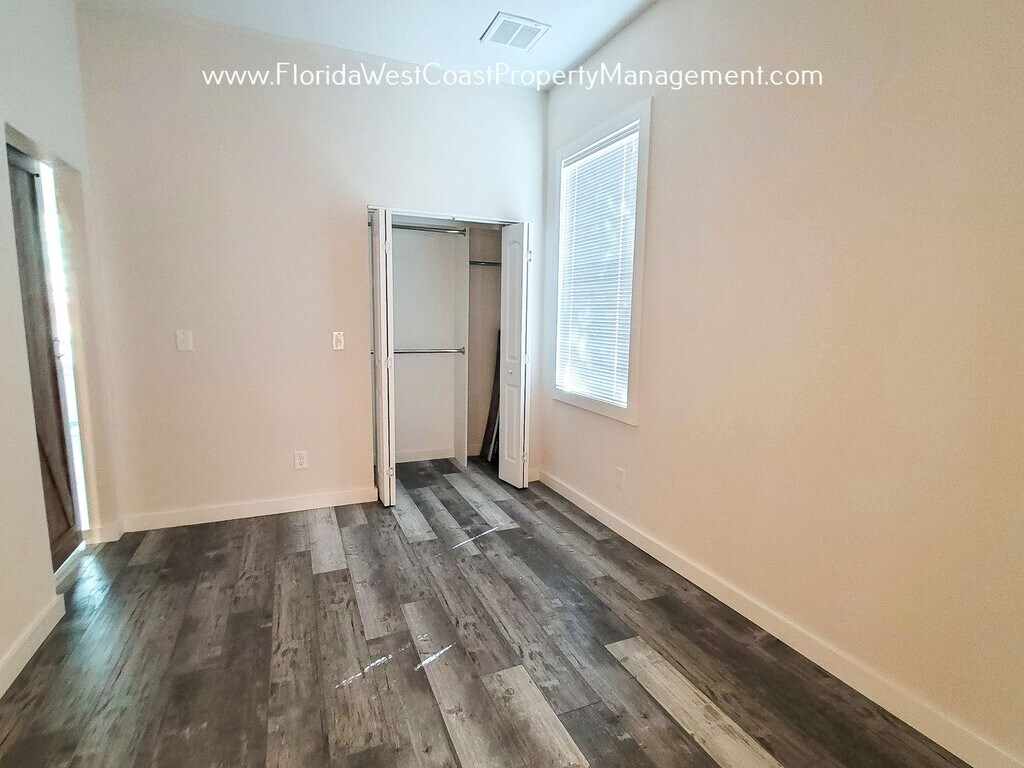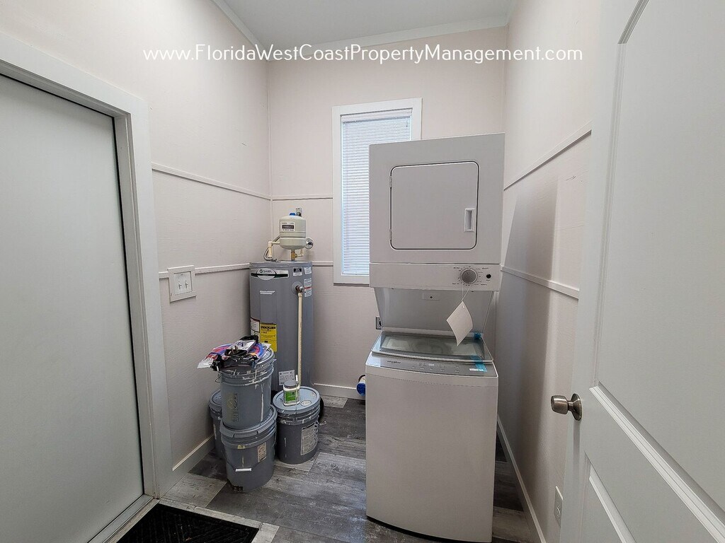 Fantastic 2 bedroom/1 bath- FLORIDA COTTAGE available in FEBRUARY FOR ANNUAL LEASE! NEW PAINT! You will appreciate this corner cottage and the volume ceilings throughout the home plus spacious kitchen with raised panel cabinets, quartz counters, kitchen island island that opens onto the living area. The fully equipped kitchen offers stainless appliances! The living area offers several windows that allow the outside in with super natural light! The primary suite has a space saving barn door access and well appointed closet for storage, ceiling fan/light kit and direct access to the full bath. The finishes in the bathroom offer the matching grey quartz counters, raised panel cabinetry and spacious shower. Bedroom two is just off the living room and has a standard closet and those lovely volume ceilings! The home comes with a stackable washer/dryer located in the utility room that provides more storage space! You will appreciate the location to downtown Bradenton, West Bradenton, I-75, food shopping, and dining! * 1 domestic dog or cat under 35 lbs. Age is minimum of 2 years old for a pet. One time pet app fee of $150 due at lease start and a deposit of $300 due at lease start. NO PET RENT! *Tenant shall pay all applicable utilities for the unit. *75 app fee per all adults 18+A larger deposit could be required depending on application result *One time move in make ready move -In fee of $250 due at lease start * In order to schedule a showing you will be asked to provide a copy of photo ID of each person (18 and over) that will be touring with you. *Street Parking and Parking Space/ NO assigned parking. *HOA rules/regs apply/Deed restrictions apply. *Move in funds are paid in certified funds/ APPLICATION FEES NON REFUNDABLE**** *If an application is submitted, and it has missing information , this can delay the process. Please fully complete applications *A home is only held off the open market with a fully completed and approved application and deposit.