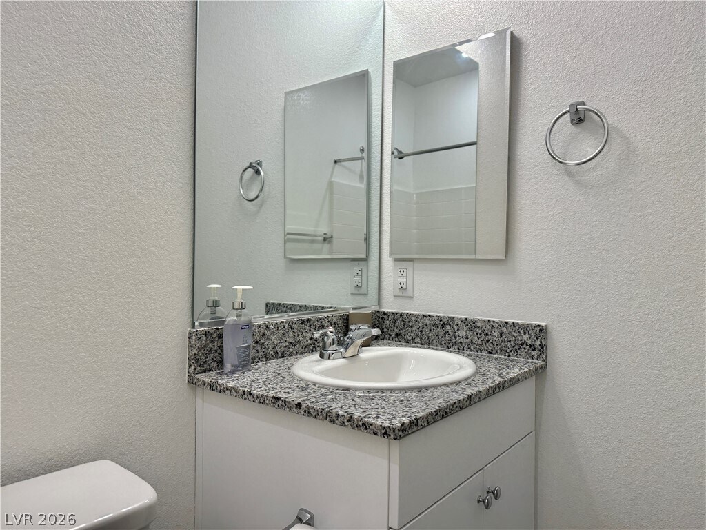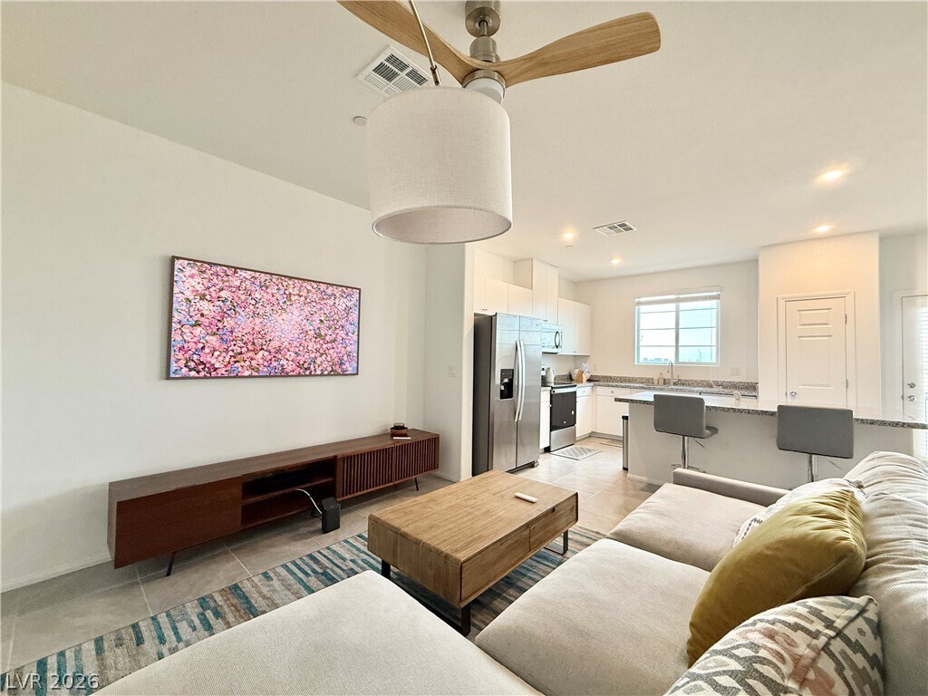 Welcome to this fully furnished, like-new home in the amenity-rich Majestic Point Community! This energy-efficient property offers modern living with a touch of luxury, including partial Strip views from the upstairs balcony. The oversized 2-car garage easily accommodates SUVs or trucks and provides additional storage space. Inside, the gourmet kitchen impresses with white cabinetry, granite countertops, stainless steel appliances, and upscale plumbing fixtures. The primary bedroom is conveniently located on the first floor and features a walk-in closet, granite countertops, and an upgraded shower. A perfect blend of comfort, style, and functionality!