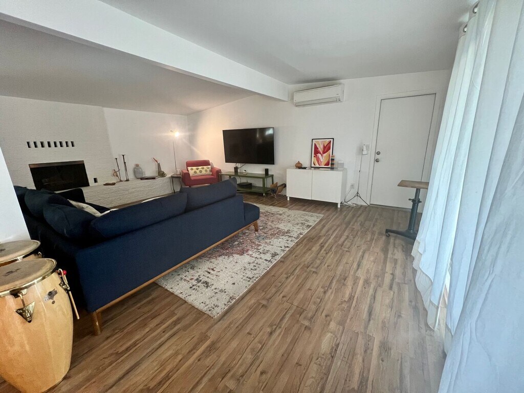 Charming three-bedroom two bath mid-century modern home completely updated. Updated kitchen cabinetry, countertops, electric cooktop and oven vent hood. Unique kitchen, backsplash, refrigerator double oven and dishwasher included. Large open concept living room includes mid-century style furniture and wood-burning fireplace. Large dining room table and office nook with Apple Computer included. Wood laminate flooring throughout the living room, kitchen and hall with carpeted bedrooms. Each room is spacious with large closet, fully furnished beds, chairs, ottoman, nightstands, etc. The living area as well as all three bedrooms have their own mini split HVAC system for zone heating and cooling. The master bedroom features an en suite bathroom with a standup shower and modern cabinetry. The guest bath has a full tub and shower enclosure with a modern style tub surround a modern sink and countertop. Mostly all new updated LED lighting fixtures throughout the home. Two car garage with washer and dryer included. There is a large back patio area boasting spectacular views, and a covered area with a weber barbecue included. Internet and trash service paid.