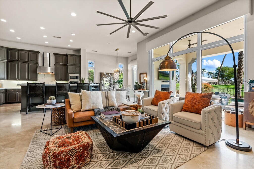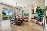 Tucked behind the gates of the exclusive Palms Golf Club,this single-level transitional Spanish villa sits proudly on the 10th tee box a front-row seat to the desert's most coveted views. Designed with soul and intention,every inch of this 3-bedroom + den/office retreat has been curated for the discerning guest who values beauty,privacy,and connection. Step through the private courtyard and into a home where light,texture,and clean lines bring timeless warmth to modern living. Vaulted ceilings,hand-selected furnishings,and natural materials create a seamless blend of California casual and European-inspired elegance. The heart of the home a chef's kitchen with quartz counters,stainless appliances,and a custom bar opens to a sunlit great room,where oversized glass doors lead to the show-stopping backyard. Outdoors,life unfolds around the pool,spa,and rustic-modern fire feature. Host alfresco dinners under the stars in the outdoor kitchen and dining pavilion,unwind in the spa after a round of golf,or gather for golden hour cocktails as the sun melts over the fairway. Every space is built for celebration,conversation,and restoration. The primary suite offers a tranquil escape with a king bed,soaking tub,and serene views. A private guest room with queen bed ensures comfort for visitors,while the detached casita with its own entrance and king bed offers a luxury stay all its own. This is not just a home it's a destination. A place where mornings begin slowly,afternoons are meant for play,and every evening invites connection. Now booking for the 2025/2026 season.'