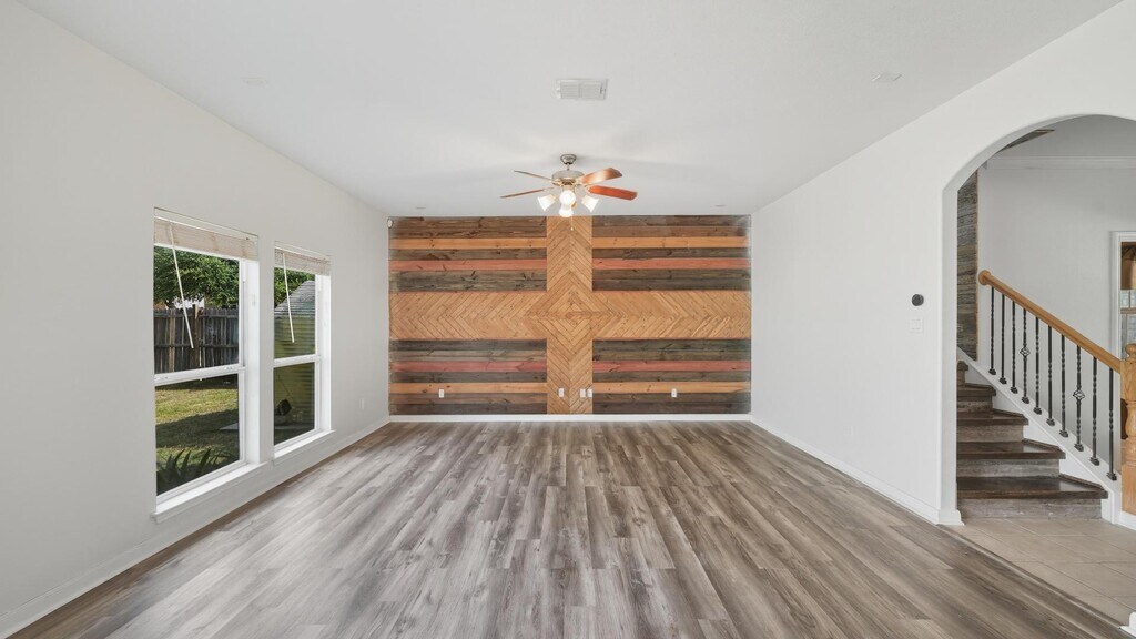 This inviting 4-bedroom, 2.5-bath home sits on a spacious corner lot and offers a perfect blend of comfort and style. Enjoy an updated primary suite featuring barn doors that open to a private en-suite bath. All bedrooms and the laundry room are conveniently located on the same floor. The island kitchen provides plenty of counter space, ideal for cooking and entertaining. Step out back to a covered porch that's perfect for relaxing or gathering with friends. A must-see rental in a great location! STONEBROOK