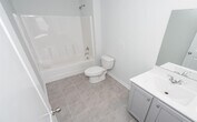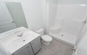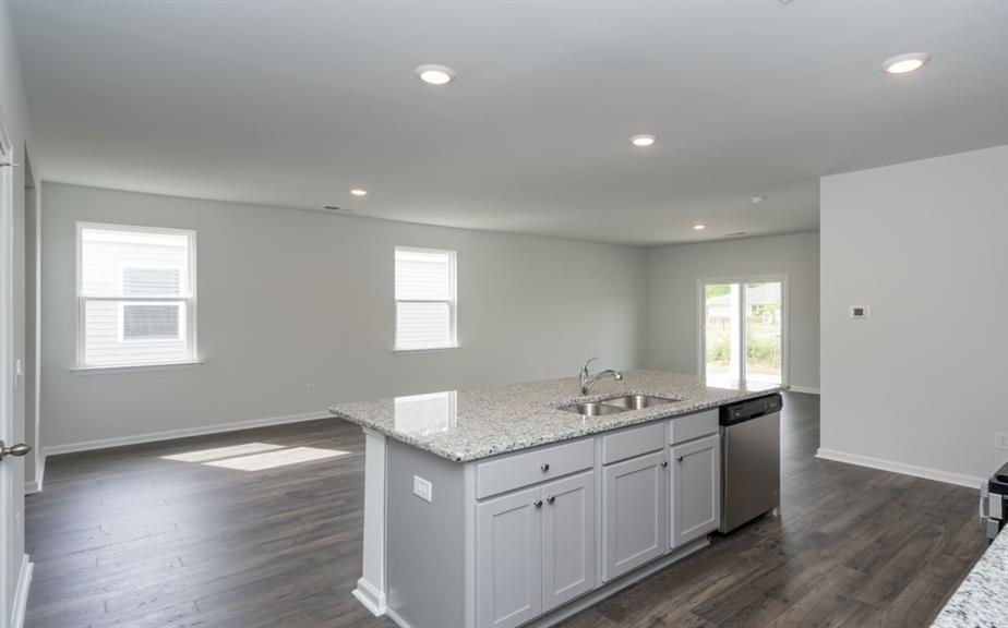 This spacious home offers 5 bedrooms and 3 full baths with vinyl flooring the common areas and carpet in bedrooms. The large open kitchen features granite countertops, a counter-height island, abundant cabinet space, a walk-in pantry, and stainless-steel appliances including a hood vent microwave, glass-top range, and dishwasher. A first-floor bedroom and full bath provide added flexibility for guests or multigenerational living. Upstairs, the primary bedroom retreat includes a walk-in closet, while the primary bath showcases a dual-sink vanity, a 5-foot walk-in shower with glass door, and a separate water closet. The upstairs hall bath also offers a dual-sink vanity. Community features Clubhouse, Fitness Facilities, Playground, Pool-Community, Tennis Courts.