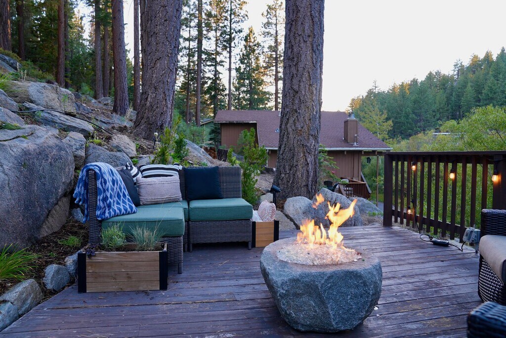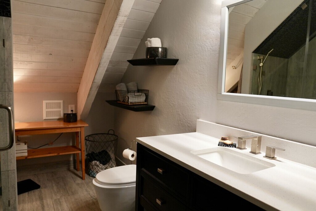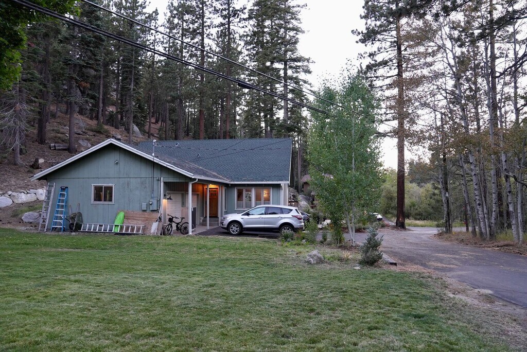 Beautiful 3 BR 2BA modern cabin home in middle Kingsbury. Main level has hardwood floors throughout the living, dining and kitchen areas and new carpet in the 2 bedrooms. Living room has gas fireplace. Modern kitchen, with an eat-in countertop, is open to the living and dining areas. Large windows and 22’ vaulted ceilings bring in the natural light. The main bedroom upstairs was expanded and fully remodeled in 2021 with hardwood floors, wood windows, and a balcony overlooking the waterfall & large deck. Bathroom has tiled floors, modern style and a steam shower. Laundry and storage are available in the oversized 2 car garage. SNOW REMOVAL and garbage service are included in the price. Level driveway and street to Kingsbury Grade make Winter access easy. Home can be rented either furnished or unfurnished. Home is available starting on 1/2/2026 for up to 3 month lease.