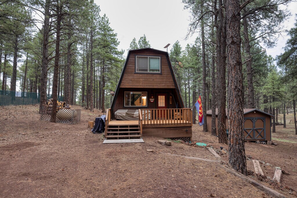 Enjoy the tall pines of the Kaibab National Forest as your backyard at our 2BR/ 1BA A-Frame cabin. Plenty of room on the 1 acre property to feel relaxed. Centrally located, between Flagstaff and Williams.