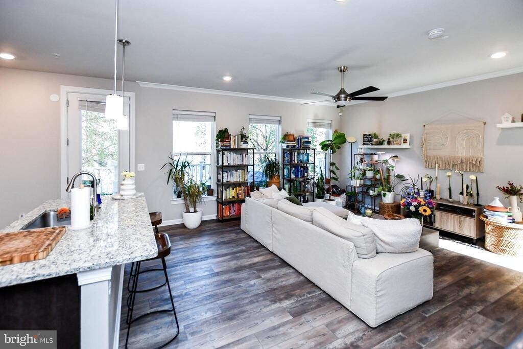 Welcome Home to this beautiful four-level home in the heart of Alexandria, VA blends modern style, comfort, and unbeatable convenience. It features an open and airy floor plan perfect for both everyday living and entertaining. The main level showcases a gourmet kitchen equipped with energy-efficient appliances, an oversized island, and ample counter space. The seamless layout opens to a spacious deck—ideal for summer gatherings or relaxing evenings outdoors. Upstairs, the primary suite impresses with a tray ceiling and a luxurious en-suite bath featuring dual vanities and a sleek walk-in shower. Two additional bedrooms and a full bath provide plenty of space for family or guests. Half baths on both the main and lower levels add extra convenience. The lower level offers a generous family room with direct access to the backyard—perfect for a media space, home gym, or play area. This home also includes a Ring video doorbell, integrated alarm system, smart lock, water leak detector, and smart water valve for peace of mind and modern living. LVP flooring and custom paint throughout all levels, giving the home a fresh, move-in-ready feel. Ideally located within one block of Metro Station, easy commute to Virginia Tech’s Alexandria campus, major commuter routes (I-495, I-95, I-395), downtown Washington, DC, and the charm, dining, and waterfront of Old Town Alexandria.