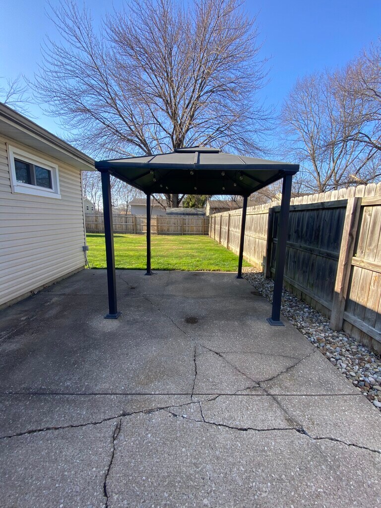 One story ranch house. 3 beds 1 bath for rent in North Ridgeville. Good credit required. 630 plus. New vinyl floors, renovated upgraded bathroom, new heating and air conditioning, new roof. Fenced in private backyard with a shed for storage. New dishwasher, large family room. In-unit new washer and dryer. Central air conditioning and heat. Close to schools. Dogs and cats allowed for an additional fee. No garage or basement. There is a storage shed.