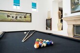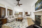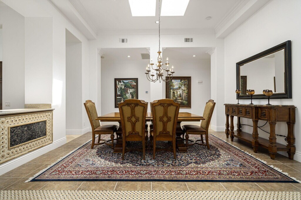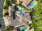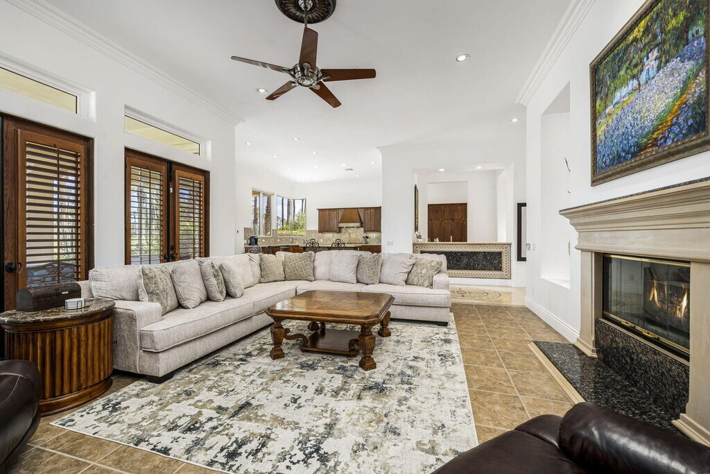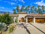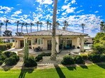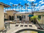 Experience the pinnacle of resort-style country club living at 56985 Village Drive,located in the highly sought-after Palms Country Club. This fully furnished,European Chateau-inspired estate offers 4 bedrooms,4.5 bathrooms,and a private casita with its own entrance,kitchenette,dining,living,office area,bedroom,and spa-like bathroom with soaking tub,ideal for guests,extended family,or long-term visitors. Every detail of this home has been designed for comfort,elegance,and entertaining. Enter through a monumental private wooden gate into a grand courtyard featuring a central fountain,setting the tone for a residence that blends sophistication with timeless charm. Inside,the formal entryway opens to a formal living room with a billiards table and double-sided fireplace. To the right,a formal dining room,and off the kitchen,the breakfast room which offers expansive windows overlooking the golf course,offering stunning views of the greens,mountains,and palm trees. The chef's kitchen is a culinary dream,featuring a Sub-Zero refrigerator,commercial-grade stainless steel appliances,dual sinks,an eat-up island,and abundant custom built-ins. The residence also includes a large wet bar with wine fridge,perfect for entertaining family and friends. The primary suite serves as a private retreat,with a spa-like bathroom complete with dual vanities,soaking tub,shower,and a generous walk-in closet. Two additional bedrooms provide ample space,while multiple skylights,custom shutters,and ceiling fans throughout the home create an atmosphere of elegance and comfort. A spacious laundry room and 3-car garage,including room for a golf cart,add convenience and practicality. Step outside to a backyard that opens directly onto the golf course,surrounded by mature,lush landscaping. Stone pavers guide you through multiple entertaining areas,including a large covered patio with cathedral ceilings and ceiling fans,and an outdoor built-in BBQ. The pool area is a showstopper,with a large baja shelf,a river-style water feature that wraps around the property,and a waterfall spa. This estate provides seamless access to La Quinta's premier country club amenities,including a lively social calendar,clubhouse,dining,shopping,and nearby equestrian venues,polo fields,and tennis garden. Designed for those who desire luxury,privacy,and an elevated lifestyle,56985 Village Drive is the ultimate combination of sophistication and desert charm.