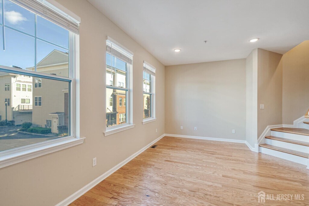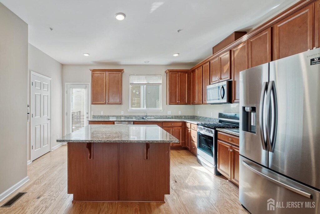 Luxurious and spacious,this exquisite newer,North Facing townhouse boasts 4-BR,3.5 baths & 2-car garage Townhouse is located in the sought after Heights at Main Street development in North Brunswick. This Crestwind model has a bedroom and a full bath on first floor. Solid oak stairs lead to level 2 which features an open and spacious floor plan with gourmet kitchen,including beautifully upgraded maple wood cabinets and granite countertops,SS appliances with counter depth refrigerator,a large center island and powder room. 3rd level has master bedroom with master bath,2 additional bedrooms,an additional bath and a conveniently located laundry room. Additional loft on level 4 can be used as a study,playroom or media room and leads to roof top balcony with a hookup for gas grill. Townhouse features many upgrades including hardwood flooring,upgraded tiles in the bathrooms,220V outlet in the garage for Electric vehicle charging,Cat6 data jacks,upgraded 65 gallon water heater garage door opener,railing and balusters on the staircases.