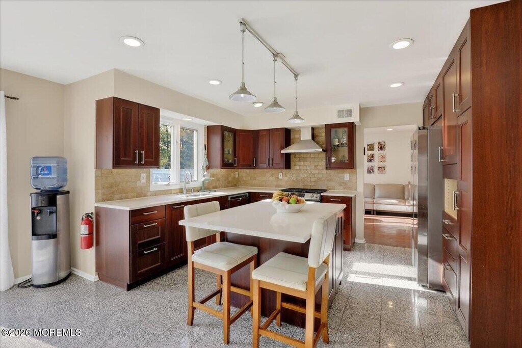 SUMMER RENTAL!! Beautiful colonial home in Eatontown! This home has a great flow with a large eat in kitchen with quartz counters,granite floors and center island. There are stainless steel appliances,wood cabinetry and great bar area. Sliding glass doors lead to large wood deck and huge rear yard. Spacious living room and dining room with hard wood floors off of the grand entranceway. Comfortable den with fireplace off the kitchen. Upstairs Includes 4 bedrooms and ample closet space. Sunlit primary suite with walk in closet and ensuite bathroom with tub and shower. Large finished basement with high ceilings. 2 car garage with convenient laundry room with storage leading into the home. Unlimited possibilities! Must see!