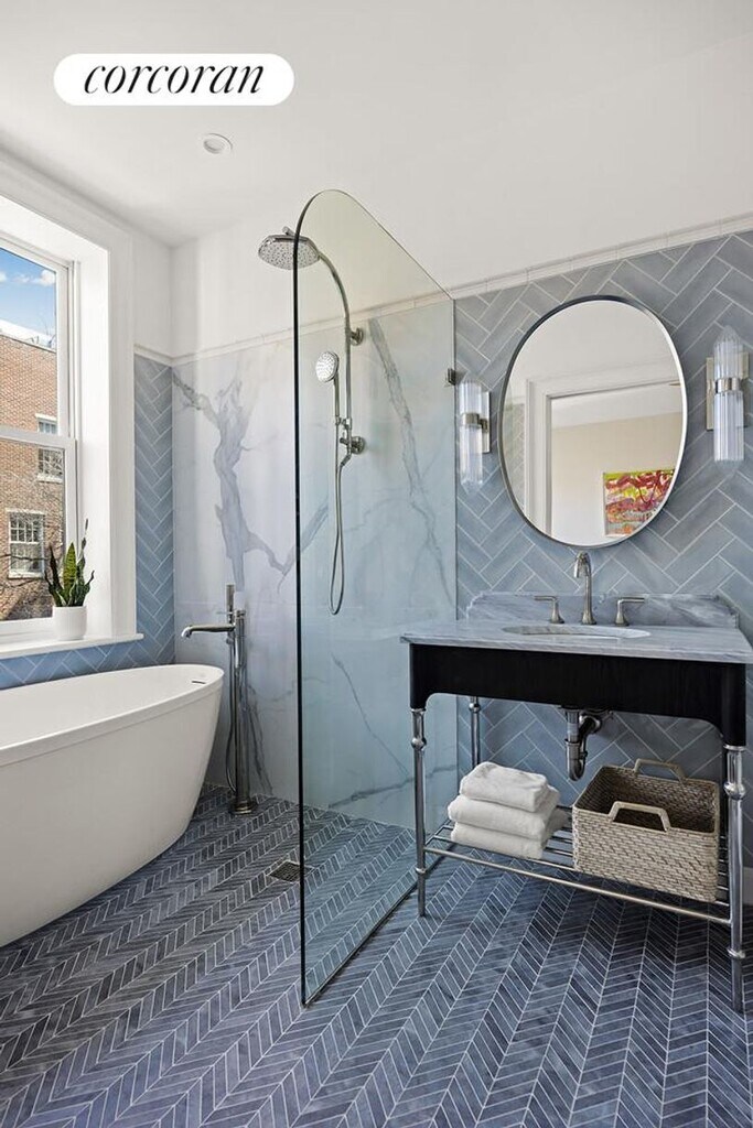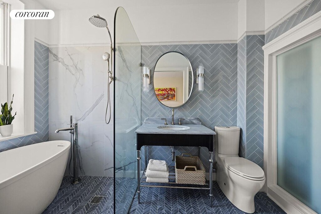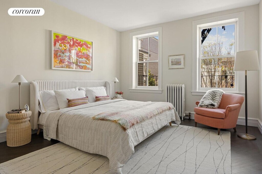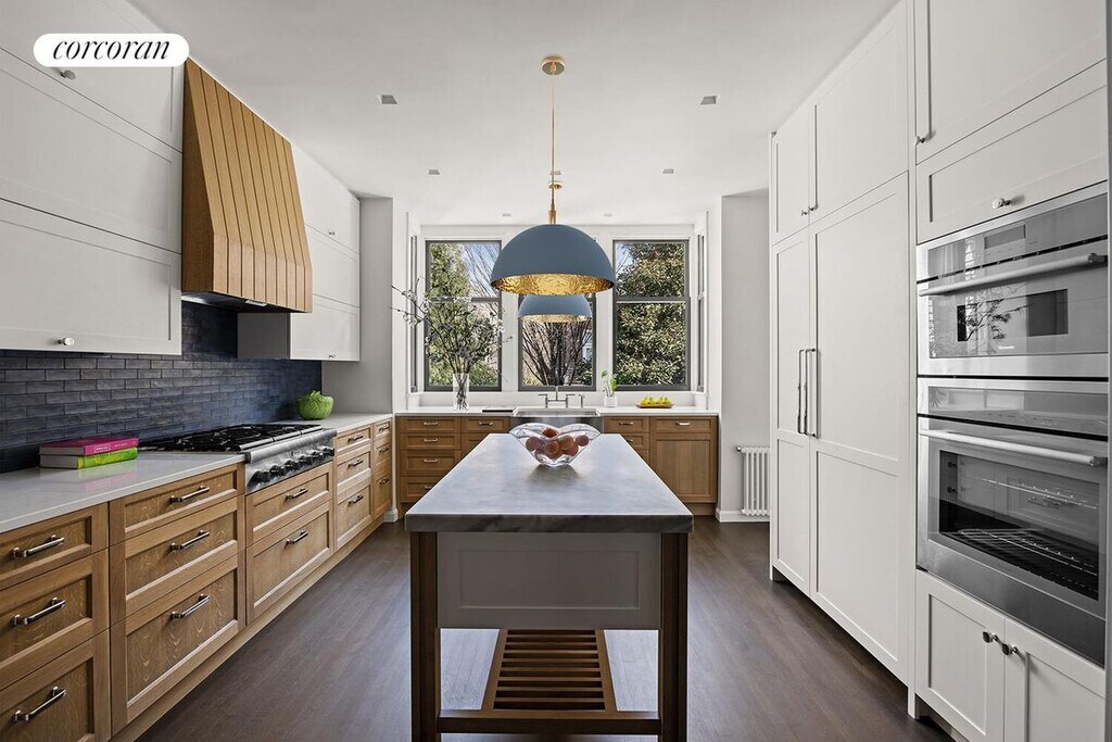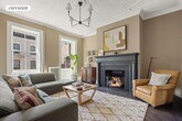 Impeccably Designed, Restored Townhouse Triplex for Rent in Brooklyn Heights Experience refined townhouse living in this meticulously restored 5-bedroom, 4.5-bathroom triplex located at 57 Middagh Street in prime Brooklyn Heights. This exceptional home combines historic architectural detail with modern luxury, just moments from Manhattan.The parlor level features soaring ceilings with ornate original tin detailing, a wood-burning fireplace, and a custom chef's kitchen outfitted with Thermador and Miele appliances and bespoke cabinetry. Triple oversized windows flood the space with natural light and frame views of the back deck and landscaped garden. Ample storage and a conveniently located powder room complete the parlor floor.The entire second floor is dedicated to the expansive primary suite, offering two en-suite bathrooms, a generous dressing room, a private sitting room with a wood-burning fireplace, an open study with reading nook, and a spacious laundry room.The top floor continues the home's architectural elegance with original tin ceilings and oversized windows throughout three additional bedrooms and two full bathrooms. The rear bedroom provides direct access to a full-width private terrace with stunning views of the Brooklyn Bridge and DUMBO. An internal home office anchors this level, ideal for remote work.Additional features include multi-zone HVAC throughout the unit and radiant heat in all bathrooms.Perfectly positioned on one of Brooklyn Heights' most coveted, quiet blocks, this townhouse is just steps from the Brooklyn Heights Promenade, Brooklyn Bridge Park, DUMBO, neighborhood bistros, and everyday amenities. The A/C subway lines are only 1.5 blocks away, offering effortless access to Manhattan and Fort Greene. A nearby pathway and footbridge lead directly to Brooklyn Bridge Park and the new deep-water marina at the end of Middagh Street.Designed, built, and decorated by the award-winning team at R.A. Somerby, this residence represents a rare opportunity to rent a truly exceptional Brooklyn Heights townhouse. Upfront costs: $20 rental application fee per applicant. At lease signing: first month's rent and one-month security deposit.