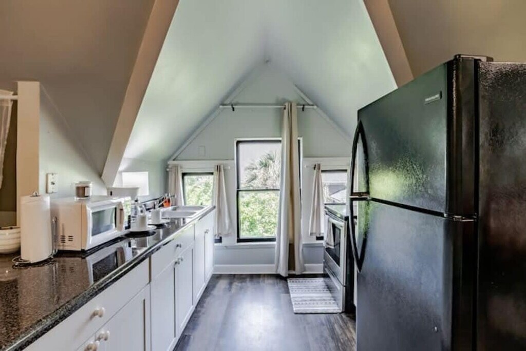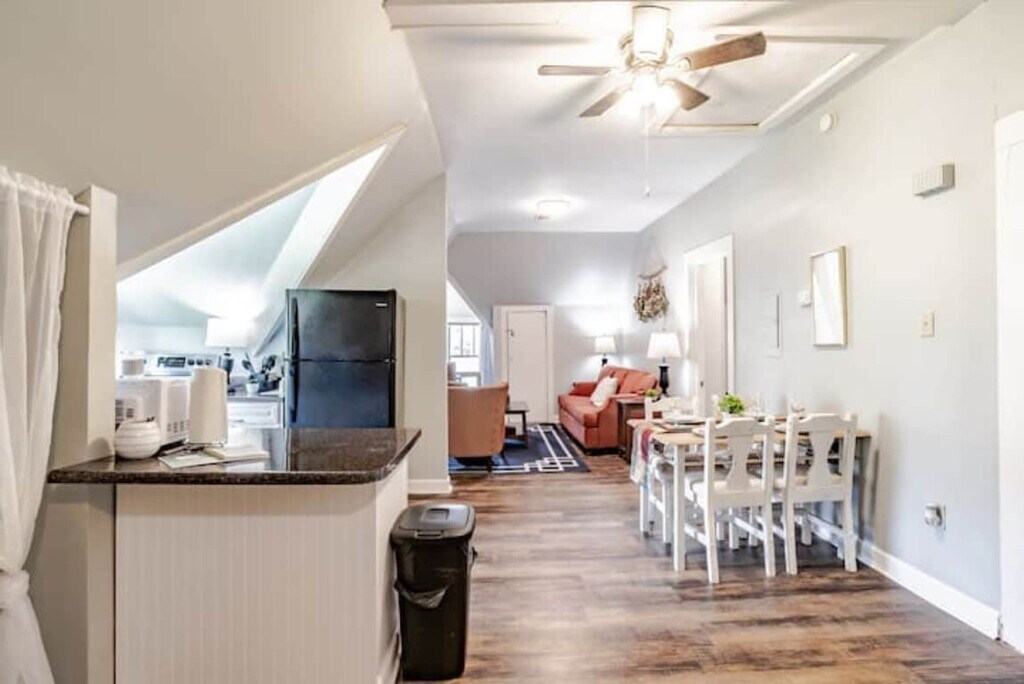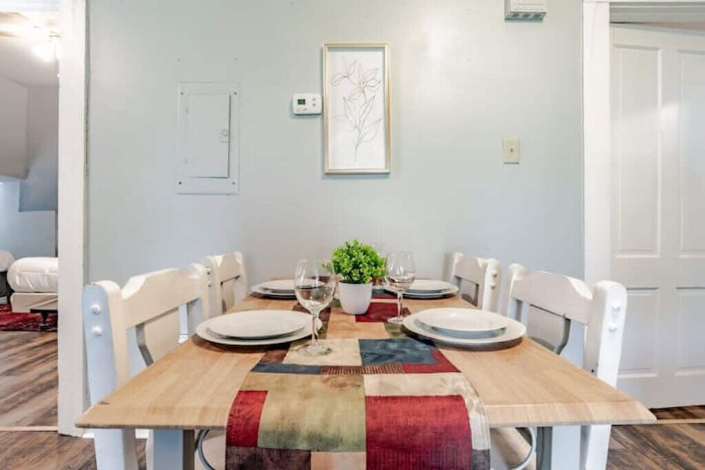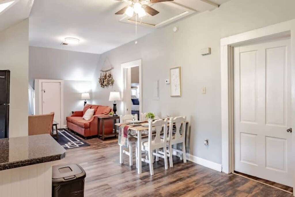 Feel at home in this well-equipped two-bedroom, two-bathroom upstairs apartment, located within walking distance to restaurants and the Mardi Gras parade route. Situated on the second floor of a converted historic home, this apartment offers a unique blend of charm and convenience, just five minutes from downtown Mobile and a 45-minute drive to Dauphin Island. This apartment is part of a quad-plex, with a shared porch and outdoor seating area. Inside, you'll find two bedrooms, one featuring a king-size bed and a twin, and the second bedroom with a double bed. The living room includes a queen sofa bed and a couch, and there are two full bathrooms with showers. This pet-friendly home welcomes your furry friends with a $50 pet fee per pet, and additional costs may apply for extra cleanup. A pack 'n play/travel crib is available upon request. Nestled in the Old Dauphin Way Historic District of Mobile, this apartment offers easy access to free parking, and ride-sharing services like Uber and Lyft are readily available. Enjoy the historic charm of the neighborhood while being close to modern conveniences. Guests must be at least 21 years of age to rent this property. Smoking is prohibited, and any signs of smoking will incur a $500 damage charge. Quiet hours are from 10 PM to 7 AM, and violations may result in reservation cancellation without a refund. Pets must be crated when unattended, and all waste must be cleaned up. A non-refundable pet fee applies, and additional cleaning costs may be charged if necessary. Trash must be bagged and placed in provided bins, with a $100 charge for excessive trash removal. This home does have Wi-Fi available but does not have an ethernet connection.