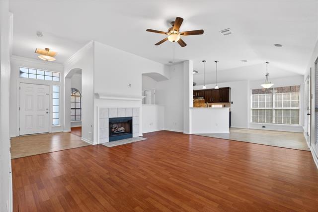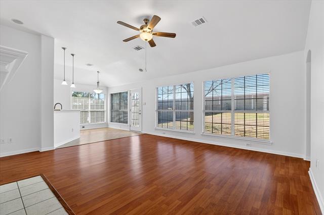 Lease this beautiful and spacious single-story 4-bedroom, 2-bath home! This bright and inviting home has been freshly painted and features charming interior updates with floors throughout, with no carpets! The secondary bathroom has been recently remodeled, adding a modern touch. Enjoy a fantastic open floor plan with high ceilings and abundant natural light from numerous windows. The family room flows seamlessly into the breakfast area and kitchen, highlighted by a wall of windows overlooking the oversized backyard. The kitchen offers granite countertops, a gas cooktop, stainless steel appliances, and a convenient breakfast bar. Energy efficiency is a plus with a high-efficiency HVAC system to help keep utility costs low.The private primary suite is a true retreat, featuring an updated separate shower with frameless glass door, deep garden tub, dual sinks, and a spacious walk-in closet. Located in the highly sought-after Northwest ISD and close to parks, shopping, and dining. Schedule your showing today!