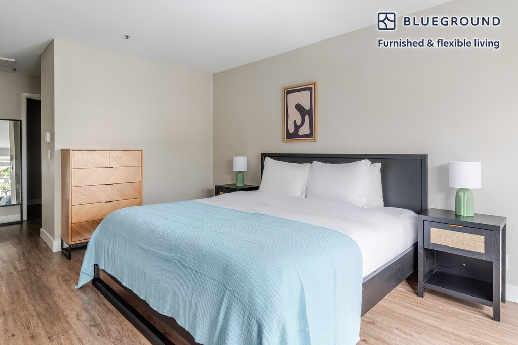 Show up and start living from day one in San Francisco with this spacious two bedroom Blueground apartment. You’ll love coming home to this thoughtfully furnished, beautifully designed, and fully equipped South Beach home. (ID #SFO1810) The advertised rate of $4,350/month is the lowest available price, based on a 12 month(s) stay with a move-in date of March 1, 2026. Rates vary depending on the duration of stay, season, and other parameters. For exact pricing and additional pricing components, please visit our website and enter your desired move-in and move-out dates. The rate is applicable when billed upfront; it can be higher if billed in multiple payments. Brokers are welcome to reach out. Were you looking for an unfurnished lease? Try Blueground instead and upgrade from unfurnished to furnished living: - Furnished at rates comparable to unfurnished - No setup or furniture costs - save thousands - Move-in ready - save time, just bring your suitcase Designed with you in mind Thoughtfully designed with bespoke finishes, modern furnishings, and a fully equipped kitchen, you’ll enjoy that “I’m home” feeling with this Blueground apartment. Whether you’re lounging in your sophisticated living room streaming the latest and greatest entertainment on the smart TV or premium wireless speaker, or getting some well-earned rest on the superior quality mattress with luxury linens, you’ll fall in love with everything this South Beach apartment has to offer. This apartment also offers in-floor laundry. Sleeping arrangements King Bed, 70.8in/180cm King Bed, 70.8in/180cm Amenities Building amenities unique to this two bedroom apartment include an on-site: - Dryer of floor - Elevator - Swimming pool - Washing machine on floor - Lounge - Parking - Pets allowed - Playground Arrival and ongoing support The entire apartment is yours to enjoy! Throughout your stay, you’ll have access to our Client Experience team through the Blueground App. You can schedule additional cleanings, submit maintenance requests, and view our neighborhood recommendations with just a few taps. We’ll share all details upon confirmation of your stay. Ideally Located This furnished rental is located in San Francisco’s South Beach. One of the newest districts in the city, it is ideal for fitness junkies and those who love an active lifestyle. There are several paved pathways perfect for running, biking and skating. The SF Giants park is located here, so heading to a baseball game on the weekends is a breeze. Trendy restaurants and chic cafes can be found all over. Offering picturesque views of the bay, this once dilapidated waterfront area has been transformed. From here, the Ferry Building is only 10 minutes away by public transit. Other things to note Building amenities may have an extra cost. This Blueground apartment has flexible lease options, allowing you to book it for one month, a year, or more. Pets are welcome, though weight limits and breed restrictions apply and may incur fees. Parking is offered based on availability and is subject to a fee. We take great pride in ensuring every photo displayed is shot in our own units with our actual furnishings. That said, we regularly refresh our decor and furniture arrangement, which may differ from what’s pictured. [SI]