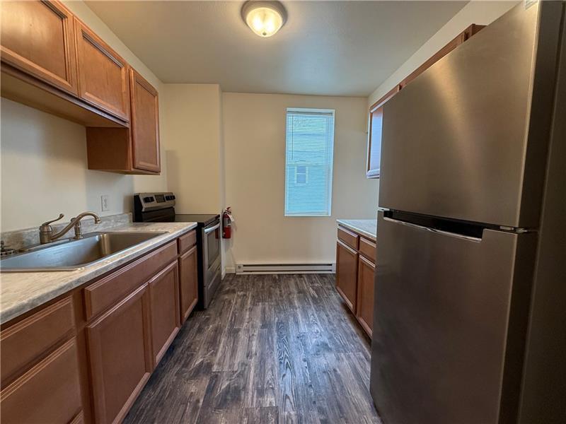 This cozy and convenient 3-bedroom, 1-bath apartment is located on the entry level of a well-maintained building, offering easy, one-floor living with no stairs to climb. The layout includes a comfortable living space, a full bathroom, and a functional kitchen equipped with a refrigerator and stove. Perfect for anyone looking for low-maintenance living in a quiet setting.