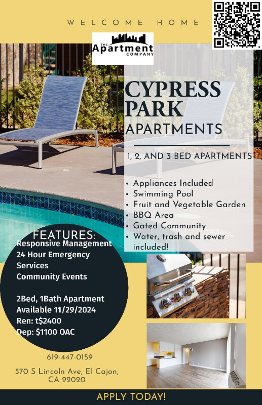 Property Id: 2383522 Welcome to your new home at 570 S. Lincoln Ave in El Cajon! This spacious 2 bed, 1 bath unit comes with great amenities such as a swimming pool, secure building, and security cameras. Enjoy the convenience of included utilities and pet-friendly policy. Don't miss out on this amazing opportunity for $2475.00/month. Book your showing today!