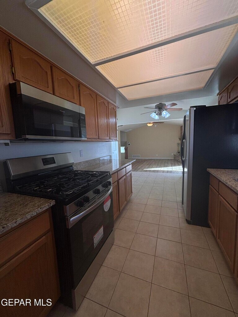 Spacious and well-maintained multi-level 4 bedroom,2 bath home available for rent,ideal for families seeking comfort and space. The home features a fenced front yard and tile flooring throughout,with carpet on the stairs only for added safety and warmth. Two separate living areas provide plenty of room for family gatherings,entertaining,or a play space,including a cozy den with fireplace. The ample kitchen comes equipped with all appliances and offers a convenient breakfast area perfect for everyday meals. Additional highlights include refrigerated air,a 2-car garage,and a very large yard with plenty of space for outdoor activities,pets,or relaxing with family. A wonderful place to call home.