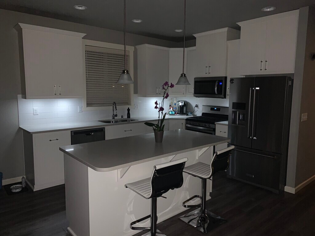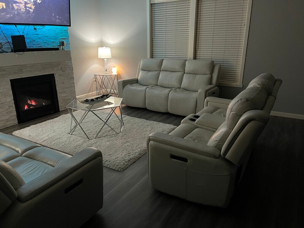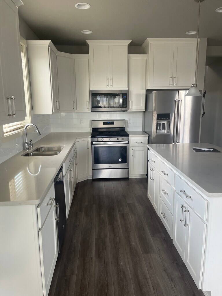 This beautiful 4-bedroom, 2.5-bath home offers a perfect blend of comfort and functionality. The kitchen and bathrooms feature elegant quartz countertops and come equipped with a refrigerator, gas stove, dishwasher, and microwave. The open-concept living room flows seamlessly into the kitchen and dining area, highlighted by a stone fireplace and direct access to a landscaped backyard with extra parking and a private entry.Blinds are installed throughout the home, with luxury vinyl plank flooring on the main level and plush carpet in each bedroom. The spacious primary suite includes a private bathroom with a large soaking tub, while the three additional bedrooms each feature walk-in closets. The home also includes an additional full bathroom and a half-bath for convenience.Additional features include central air conditioning and gas heat, a back patio for outdoor enjoyment, and a 3-car garage with an automatic opener and keyless entry. Lawn Maintenance is included.The tenant shall be responsible for payment of all utility services to the premises, including but not limited to electricity, gas, water, and garbage collection.