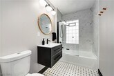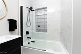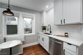 Modern luxury meets historic charm in this beautifully renovated ground-floor residence in Cleveland’s sought-after Detroit Shoreway neighborhood. Perfectly located at Herman Avenue and West 58th,you’ll be just steps from the Lakefront bike path and a short walk to Edgewater Beach and Gordon Square’s shops,cafes,and restaurants. This spacious 2-bedroom,1-bath home offers 1,368 square feet of living space,a covered front porch,and a rare 3,300-square-foot fenced-in side yard — perfect for outdoor relaxation or entertaining. Fully updated in 2022,the home features a stunning modern kitchen with quartz countertops,stainless steel appliances,custom Shaker cabinetry,and a cozy built-in breakfast nook with storage. Original 100-year-old oak hardwood floors run throughout,blending historic beauty with modern convenience. The luxurious bathroom includes marble tile,black fixtures,a floating vanity,and an accordion glass shower door. Enjoy the convenience of in-unit laundry with a 2022 Samsung high-efficiency washer and dryer,plus smart home upgrades like a keyless entry lock and Ecobee smart thermostat. Additional perks include off-street parking,basement storage,and all landscaping and snow/ice removal included in the rent. This move-in-ready home offers modern comfort,low-maintenance living,and timeless character in one of Cleveland’s most desirable neighborhoods.