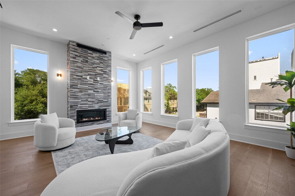 ONLY 2 HOMES LEFT. CORNER HOME WITH SIDE YARD> Luxurious new construction 4-story single family home with rooftop terrace in gated community in Galleria area walking distance to Houston's premier shopping,entertainment and eateries. 1 Bedroom/office down,living room and kitchen second floor,primary bedroom and 3rd bedroom on the 3rd floor,4th bedroom,game room,additional kitchen and rooftop terrace on the forth floor. 4th floor could be turned additional guest home with own kitchen. 11" ceiling,wood flooring all around the house,Gas fireplace,quartz countertops,high end appliances with smart HUD system,LED mirrors,up to ceiling bathroom tiles. The outstanding roof top terrace with Galleria and downtown view is an idyllic outdoor venue for hosting events or enjoying the beautiful weather. MLS# 81203233