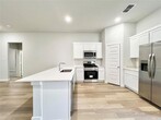 Welcome to this beautifully designed Trophy Signature Homes property, offering 3 bedrooms, a 2-car garage, and a wide driveway surrounded by lush landscaping. Inside, the gourmet kitchen impresses with white cabinetry, a gas stove, double sink, and a spacious island—perfect for cooking, entertaining, or creating your favorite meals with ease. The open-concept living area provides plenty of room to relax and unwind, while the expansive primary suite includes a cozy sitting area, a luxurious walk-in shower, dual sinks, and a generous walk-in closet. Additional highlights include tiled bathrooms, a well-appointed utility room with built-in shelving, and a fenced grassy backyard ideal for pets, gardening, or outdoor enjoyment. Built by Trophy Signature Homes and Ready Now, this thoughtful Pecan II floor plan is designed for lasting comfort and timeless living—creating the perfect backdrop for years of happy memories.