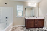 GET FIRST MONTH HALF OFF! This spacious two-story home offers a comfortable layout and great curb appeal in a convenient Northeast San Antonio location. Featuring an open-concept living area, this property provides plenty of room for everyday living and entertaining. The kitchen is equipped with ample cabinetry and modern finishes, flowing seamlessly into the dining and living spaces. All bedrooms are located upstairs for added privacy, including a generous primary suite with a walk-in closet and private bathroom. Secondary bedrooms are well-sized and share a full bath. A low-maintenance backyard and a two-car garage add extra convenience. With easy access to major highways, Randolph AFB, Fort Sam Houston, shopping, and dining, this home offers a great combination of comfort and location. Available now for lease.