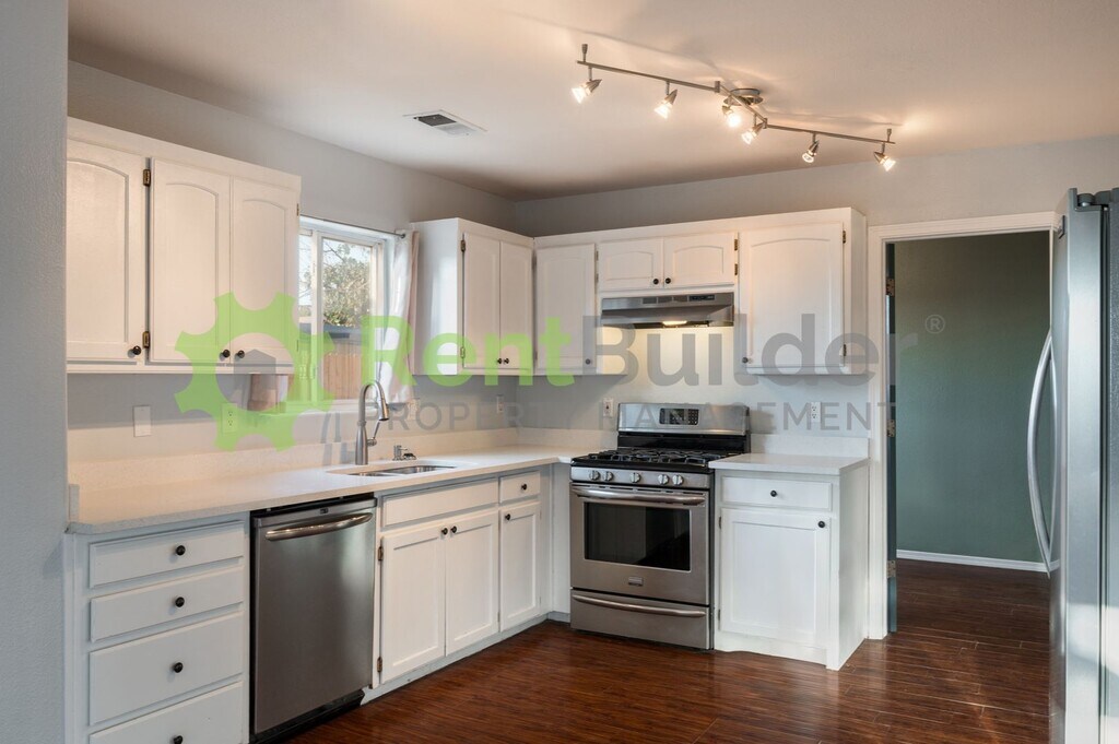 Welcome to this stunning 3-bedroom, 2.5-bathroom home. This 1697 sq. ft. gem boasts a plethora of modern amenities and updates. The kitchen is a chef's dream with new quartz countertops, a stainless steel refrigerator, gas stovetop, and oven, as well as a stainless steel dishwasher. The bathrooms have been updated giving them a more modern feel. The home has been freshly painted and features rich wood plank flooring throughout. The primary bedroom is a true retreat with an ensuite and a large walk-in closet. The home also offers a bonus room off the kitchen, perfect for an office. The attached 2-car garage comes with an opener for your convenience. The home is situated in a cul de sac location, close to the freeway and shopping for easy commuting and errands. The backyard is a private oasis with a new privacy fence and a Nice wood pergola, perfect for outdoor entertaining. Modern fixtures and ceiling fans throughout the home add a touch of elegance. This home is a perfect blend of style, convenience, and comfort. CALL US TODAY AT TO SCHEDULE A CONVENIENT SHOWING **TO QUALIFY APPLICANT MUST HAVE A CREDIT SCORE OF 650+. **A RESIDENT BENEFIT PACKAGE FEE OF $32.95/MONTH WILL BE ADDED ONTO THE MONTHLY RENT AMOUNT. **$350.00 NON REFUNDABLE PET FEE** (if applicable) + A $30.00 ANNUAL PET REGISTRATION FEE. **NO CO-SIGNERS PERMITTED.