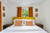 Welcome to Groovy Getaway, your retro retreat in the trendy Seminole Heights neighborhood, close to everything Tampa has to offer. This chic home features 1 bedroom, a fully stocked kitchen, Keurig machine, full bathroom, Smart TV, and a full-sized washer and dryer on the property. Feel the good vibes all around you as you chill in this funky-fresh home. You've found your perfect, peaceful home away from home in the coolest part of Tampa Bay, the historic and trendy neighborhood of Seminole Heights. Our 70's themed home is perfect for a solo or couples trip, looking to get away from the regular day-to-day hustle. Rest, recharge your batteries, and enjoy the Florida sunshine during your stay. Spend time in the comfy, but funky living room and dining room area of the home, while catching up on your favorite Netflix shows or playing board games found in the TV console. Cook up a delightful meal in the fully stocked, retro kitchen. When you're ready to take a break from your busy life, curl up under the covers of the spacious queen-sized bed equipped with a comfortable memory foam mattress. The bathrooms provide shampoo and conditioner, body wash, hair dryer, and extra towels, everything you need for a perfect stay. The Groovy Getaway offers a dedicated parking spot behind the bungalow. You can also park behind the Groovy Getaway where you'll find a left spot alongside the wall dedicated to guests. To access this, guests should enter through the alleyway behind the home and turn right into one of the two spaces. Walking just a few blocks will take you to coffee shops, restaurants, bars, and many other local favorites. A short Uber ride of about five to ten minutes will get you to Busch Gardens, Downtown Tampa, Channelside, Armature Works, Hyde Park, South Tampa, The Port, Tampa International Airport, Lowry Park Zoo, The Aquarium, Raymond James Stadium, Amalie Arena, The Straz Center, and much more. This house is very centrally located. Florida is tropical, and in such an environment, local wildlife, including insects, is frequently encountered. The home is well maintained and treated regularly to reduce bug encounters, but the occasional bug may appear. No refunds will be issued for the occasional dead or live bug. This is a 1920s bungalow and comes with quirks and charm. The washer and dryer are located outside on the back porch of the main house, a shared space with clear signage. Free laundry detergent is provided for your convenience. Use the washer/dryer between 8:00 AM and 9:00 PM to respect other guests. Enter with your personal smart lock code sent after booking. Quiet hours are from 11 PM to 8 AM. No pets on furniture to prevent smells, stains, and hair. No smoking inside; evidence will result in a fee for odor removal, duct cleaning, and furniture cleaning. No parties or events to preserve the home's condition for future guests.