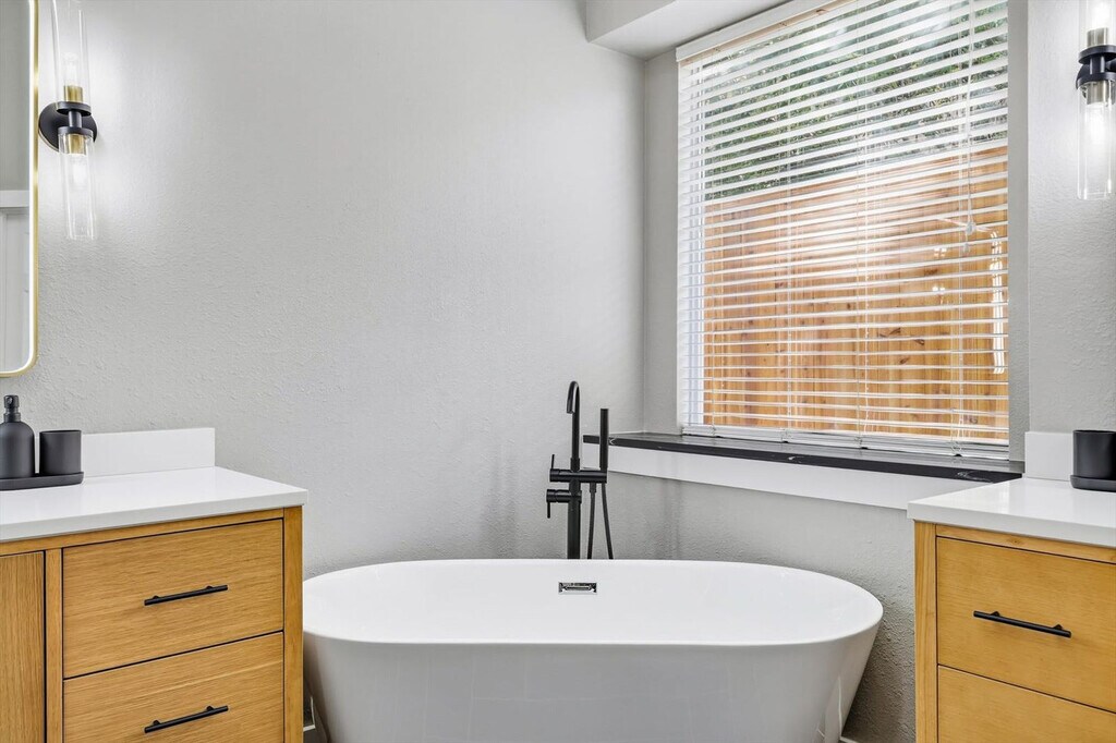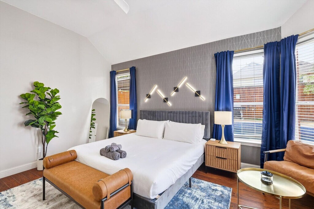 Come on in and feel at home in this vacation home jackpot! This 5-bedroom home sleeps 12 and features 2 bathrooms. This home caters to both short-term and medium-term stays and is an excellent choice for corporate housing needs. The fully equipped kitchen features stainless steel appliances, a center kitchen island, and a second sink. The dining room provides a sophisticated restaurant feel. The living room offers comfortable seating, a designer rug, an electric fireplace, a flat-screen TV, and high-speed Wi-Fi. The backyard boasts a spectacular outdoor swimming pool, a relaxing hot tub under a gazebo, an outdoor dining set, and a BBQ grill. A laundry room is fully equipped with a washer and dryer. Free parking is available in the garage or on the driveway. Pets are welcome with a non-refundable pet fee of $150 per pet (maximum of 2 pets per stay). Centrally located in the Dallas-Fort Worth metroplex, Haltom City is a vibrant community with unique activities and surrounding towns to visit. Nearby attractions include The Historic Haltom Theater, DFW Elite Toy Museum, The Golf Club Fossil Creek, Arcadia Trail Park, Capp Smith Park, and Iron Hose Golf Club. Dallas-Fort Worth attractions include AT&T Stadium, Fort Worth Water Gardens, Sundance Square, and Fort Worth Stockyards Historic District. Parties or large unauthorized gatherings are not allowed. Smoking of any type is not allowed, and violations are subject to a $450 fine plus the cost to clean, deodorize, and repair damages. Registration Number: 25-002371 [SI]