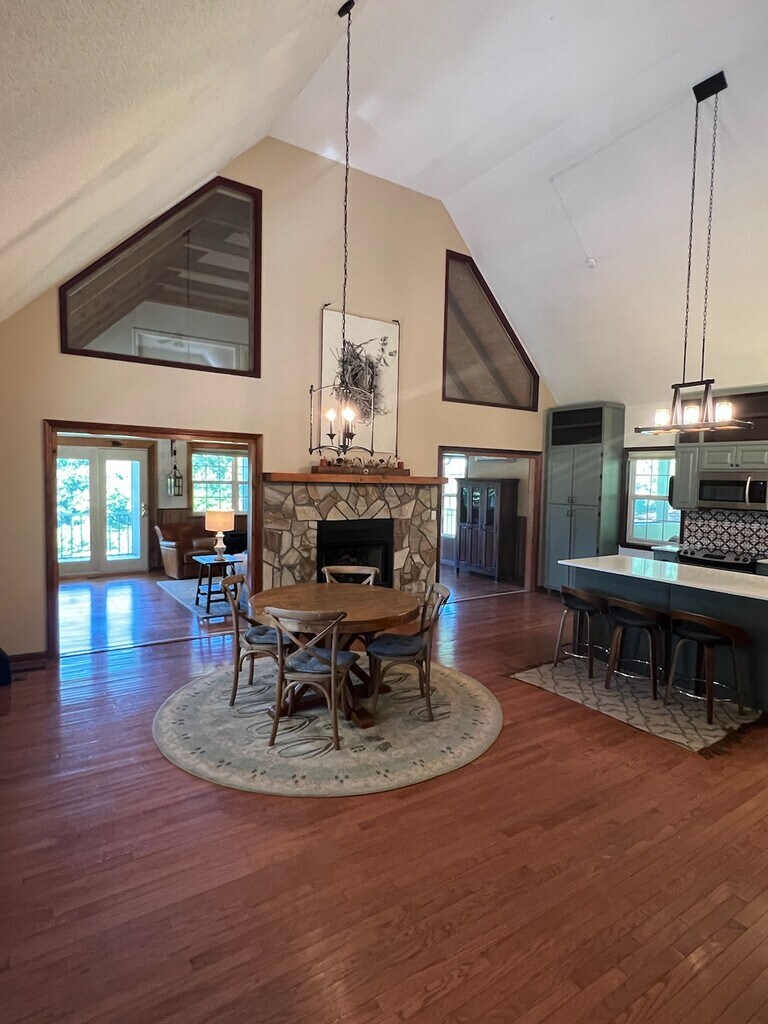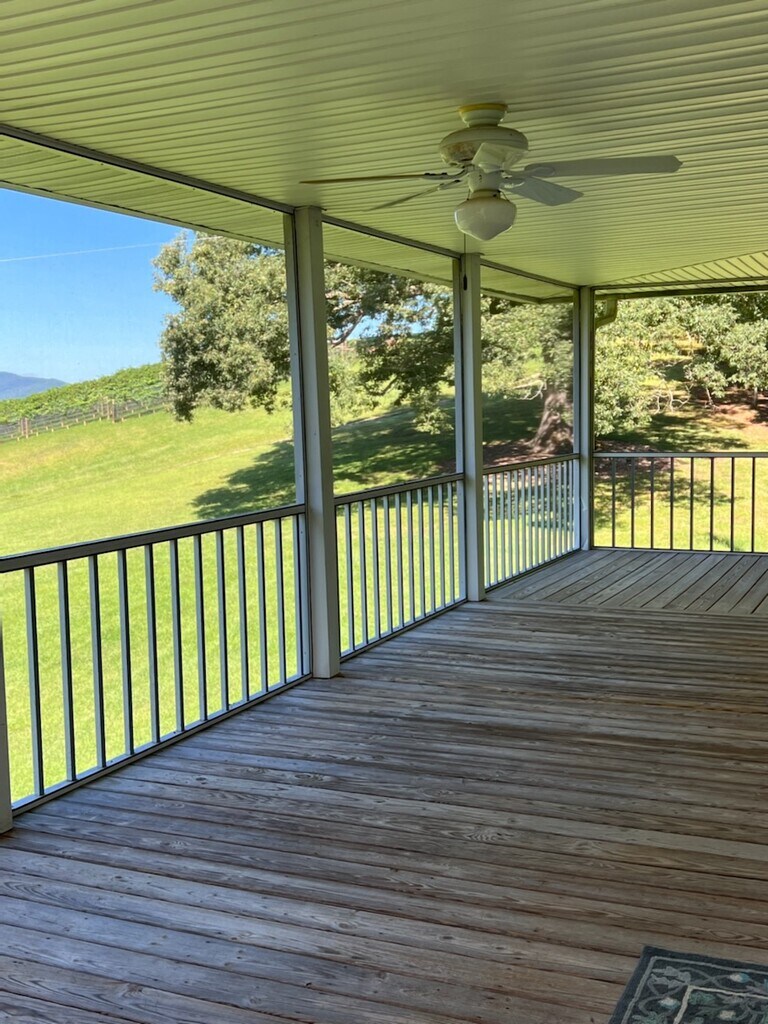 Beautiful 3 bedroom, 3 bath home with loft perfect for home office nestled next to a lovely vineyard in the sought after Choestoe community. Enjoy both views of the vineyard and of the mountains from the spacious wrap-around screened porch. Detached two car garage/workshop. Please note home will be unfurnished. Renter is responsible for electric, propane, internet and yard maintenance. Well and septic provided. No smoking. Dog run included.