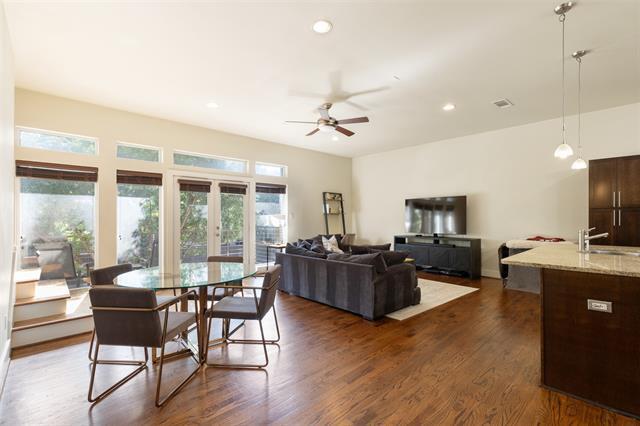Fabulous townhouse located in walking distance of lower Greenville. Front yard fenced for common use by tenants and owners. Gated entry, full two car garage,and includes washer and dryer. Second floor space is open concept for entertaining, as well as a balcony to enjoy indoor outdoor events. The kitchen is granite with stainless appliances throughout. The spacious third floor master also has a balcony for relaxing and star gazing.