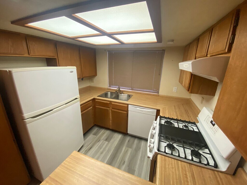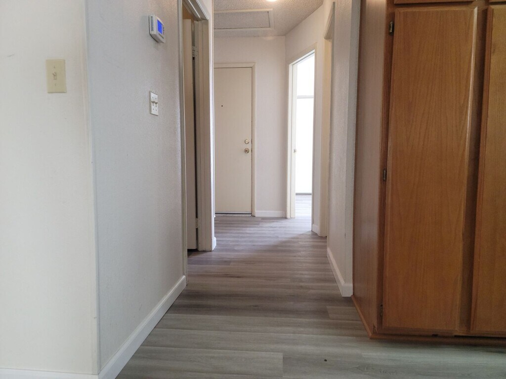 Tenant occupied until end of March. Approved applicants may be able to get an appointment. This single-story home features three bedrooms and two full baths. It has new plank flooring throughout the house. The large living area is centered around a gas fireplace and vaulted ceiling and has big windows letting in huge amounts of ambient light. The fully functional kitchen is designed for maximum efficiency. The main attraction is a five-burner gas stove with a griddle. It boasts wide counter space and a great deal of storage. The spacious primary bedroom is separate from the two other bedrooms and has a vaulted ceiling, a sliding glass door to the covered patio, and a relaxing backyard, giving the room a well-lit open feeling. The primary bath has a double sink, tub/shower combination, and plenty of cabinets. The other two bedrooms are independent of the primary bedroom and on the other side of the home. The second and third bedrooms have a full bath with a tub/shower combination. The home also has a two-car garage, and the property is completely fenced around its perimeter. Conveniently located to shopping, entertainment, parks, and recreation. Welcome to your new home! We are looking for a 650 credit score, At least a $5k gross monthly household income, and two landlord references.