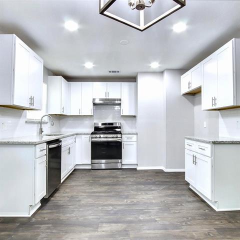 Extensively REMODELED 3 bedroom Watauga home with a fenced yard. Open living area concept with Easy care vinyl plank floors that flow nicely throughout the entire home. Trendy light fixtures, gray marble showers with ceiling fans in every room! Kitchen features pearly white cabinets, stainless steel sink, dishwasher and gas stove range. Washer-dryer connections available. Enjoy the personal driveway and car carport for seamless off-street parking and a private fenced yard.
