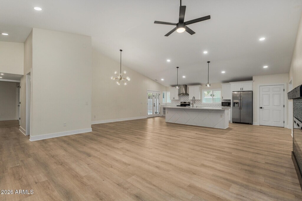 This gorgeous remodeled home is surrounded by Acoma Corridor amenities,near shopping,dining,entertainment,and parks. Manicured curb appeal features easy-care synthetic grass landscape front/back. Wood vinyl plank flooring and tile through out and impressive vaulted ceilings above create a grand yet welcoming ambiance in the living room complete with electric fireplace,open to the dining room for easy entertaining. Beautiful crown molded cabinetry and quartz countertops in the kitchen,also featuring a bonus room/office off of the kitchen. Preferred split plan with master suite complete with walk in closet,and dual sinks. The back yard has a built in BBQ and play pool. Large side yards with RV gate and block wall fencing for privacy.