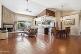 Beautiful rental in the heart of Scottsdale's desirable 85254 zip code. This home features a split,open floorplan with high ceilings that create a bright and spacious feel throughout. Enjoy seamless indoor-outdoor living with sliding glass doors to the patio from both the living room and primary suite. The primary bedroom offers a private vanity area and double sinks,while a separate den provides flexible space for a home office or game room. Cozy up by the gas fireplace,perfect for relaxing evenings. The neighborhood park and Horizon High School are just a walk away! Ideally located minutes from Scottsdale Quarter and Kierland Commons,offering premier shopping,dining,and entertainment.