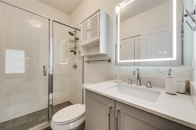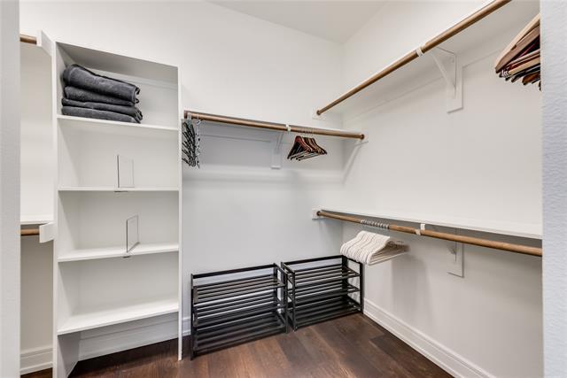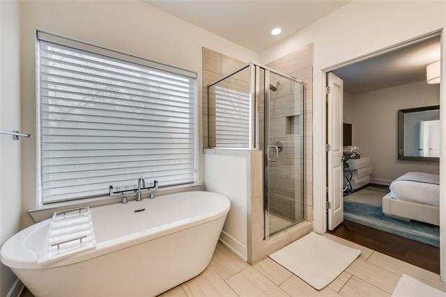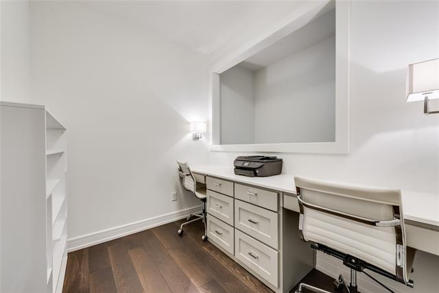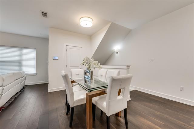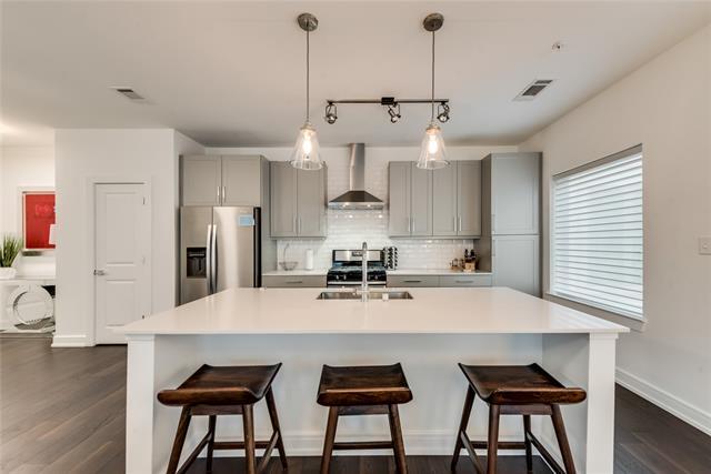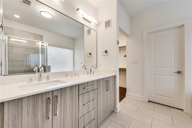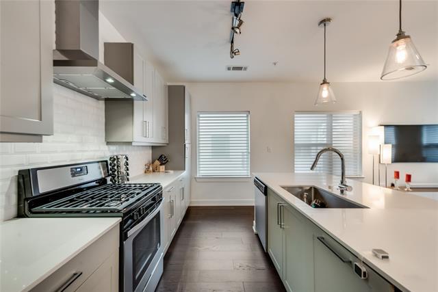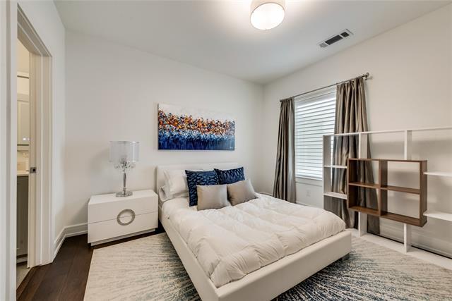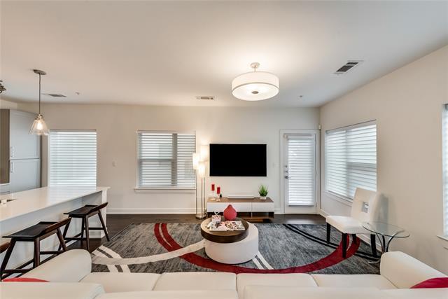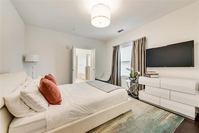Beautiful, fully-furnished condo boasting stylish, modern aesthetic with all the conveniences. Expansive living room, open to kitchen and dining, with balcony access and lots of natural light. Kitchen with ample counter space, abundant storage in cabinets & pantry, all stainless appliances, and generous island with sizable stainless sink. Office area with built-in desk space for two. Spacious main bedroom with en suite that features double vanity, tile & glass shower, separate soaking tub, and large walk-in closet. Secondary bedroom with en suite bath as well. Two spaces included in connected parking garage. Community Roof Top Grill. Very near to a wide array of shopping and dining options. Convenient to Hwy 75 and mere minutes from the Dallas Arts District, White Rock Lake, and Downtown Dallas.