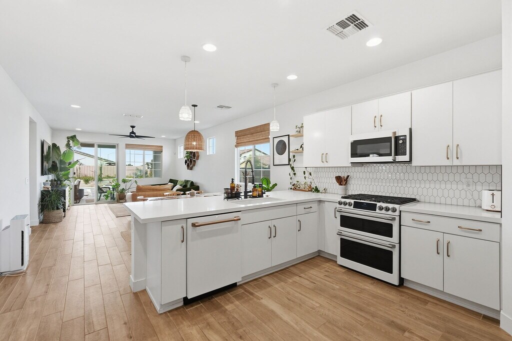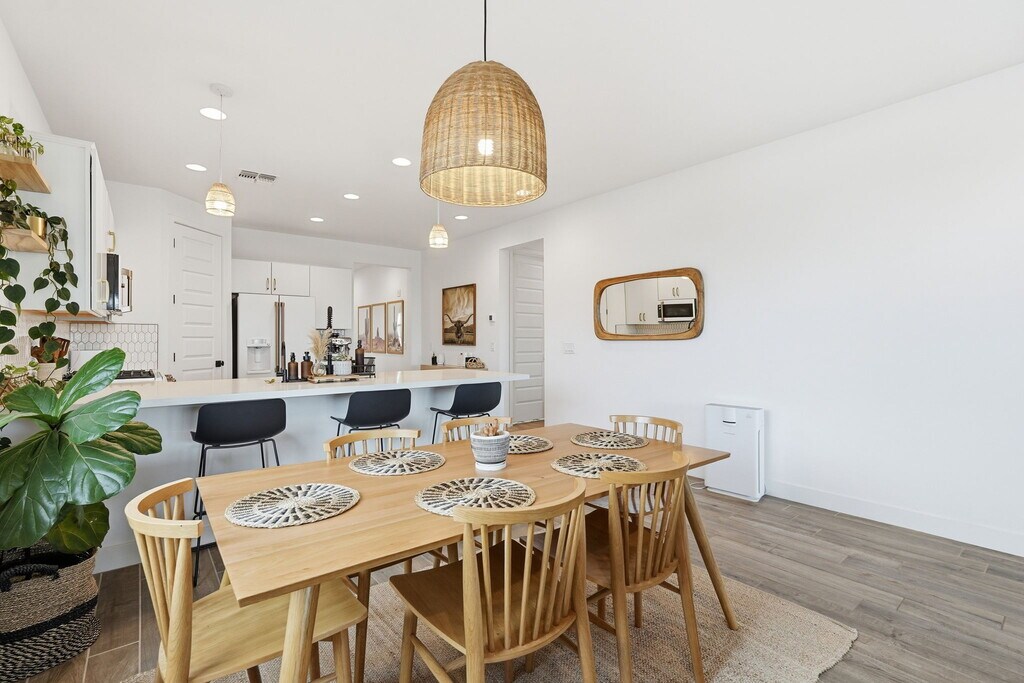 This beautiful home in the new La Mira community in Mesa offers modern living with unbeatable convenience and style. Located just minutes from the 24 freeway, the home features an open, light-filled layout with upgraded flooring and a stunning kitchen complete with sleek cabinetry, stainless appliances, and plenty of counter space for cooking and entertaining. The backyard is designed for relaxation, highlighted by a sparkling private pool — with professional pool service included — and space to enjoy Arizona evenings. Inside, the home provides comfortable bedrooms, well-appointed bathrooms, and the convenience of a washer and dryer already in place. Pets are welcome, and residents will also enjoy community amenities including a neighborhood pool. General landscaping is included, and the HOA provides routine pest control spraying for added peace of mind. With thoughtful upgrades, easy freeway access, and resort-style features, this home offers an exceptional rental opportunity in one of Mesa's newest neighborhoods.
