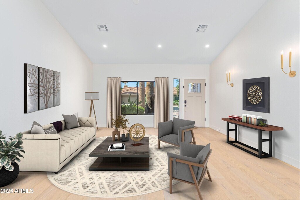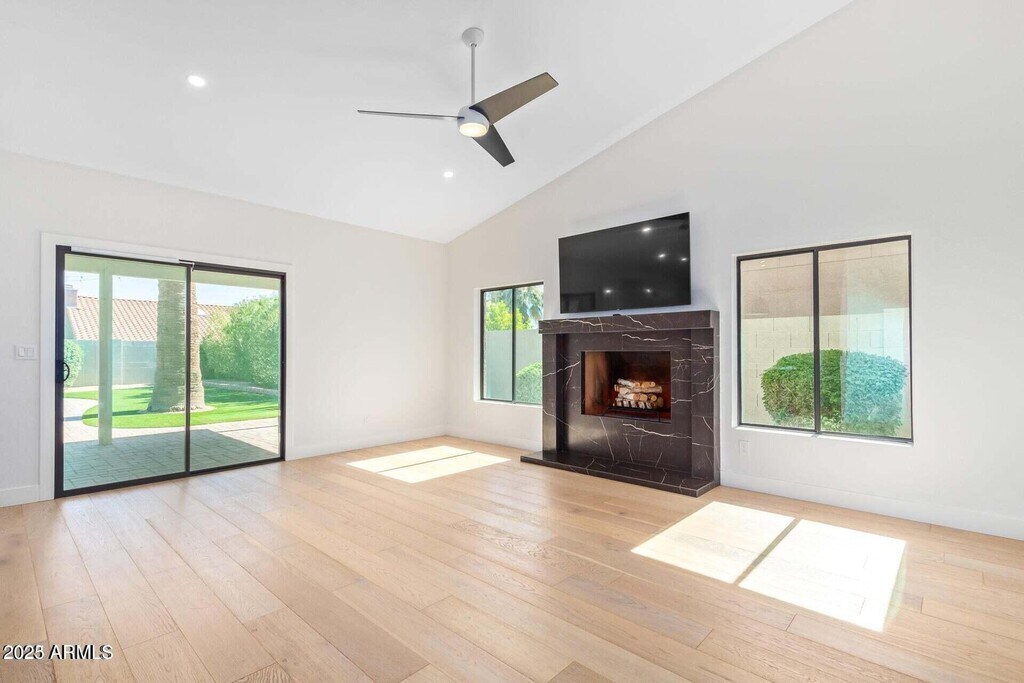 WOW! The completely remodeled move-in ready exceptional rental you've been searching for on a quiet,private freshly paved cul-de-sac in the most desirable zip code in town. Perfect for luxurious,yet comfortable living w/high end upgrades & low breezy maintenance. Unique home includes weekly pool service and bi-weekly landscape service. Spacious living areas are filled with natural lighting & low efficiency window treatments. Living spaces are great for receiving guests,entertaining,and memorable family time. A large mounted smart TV placed above the visually stunning grand fireplace,great for ambiance & cozy Arizona winter! An inviting kitchen caters to all,showcases plenty of storage drawers and cabinets,En vogue quartz countertops,breakfast bar & nook overlooking the vibrant Backyard. The primary suite has direct access to the back patio with automatic privacy shades and an en-suite with large dual sink vanity and barn door that leads to the luxury walk in closet. A large covered patio extends across the back of the house reaching out to the spacious,stunning backyard with room to play around in the large sparkling pool with loveseat. Epoxy coated garage floor with ample storage for all of your tools and toys with a utility sink. This beauty will go fast,don't miss out on making this house your home!