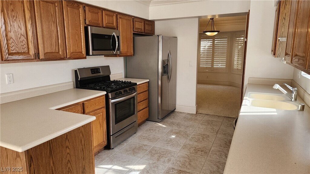 This single-story gem is nestled within the desirable Los Prados community and boasts a large primary bedroom, vaulted ceilings, and a private 2-car garage. The home comes with all appliances included, offering convenience and ease. The property sits on a huge lot, providing ample space for outdoor activities. The backyard is a true oasis, perfect for entertaining or simply enjoying the Nevada sunshine. As a resident, you'll have access to the community pool and clubhouse, enhancing your living experience. For those seeking more privacy, the home also features its own private pool. The community is guard-gated, offering an added layer of security. This home truly offers a blend of comfort, luxury, and peace of mind.