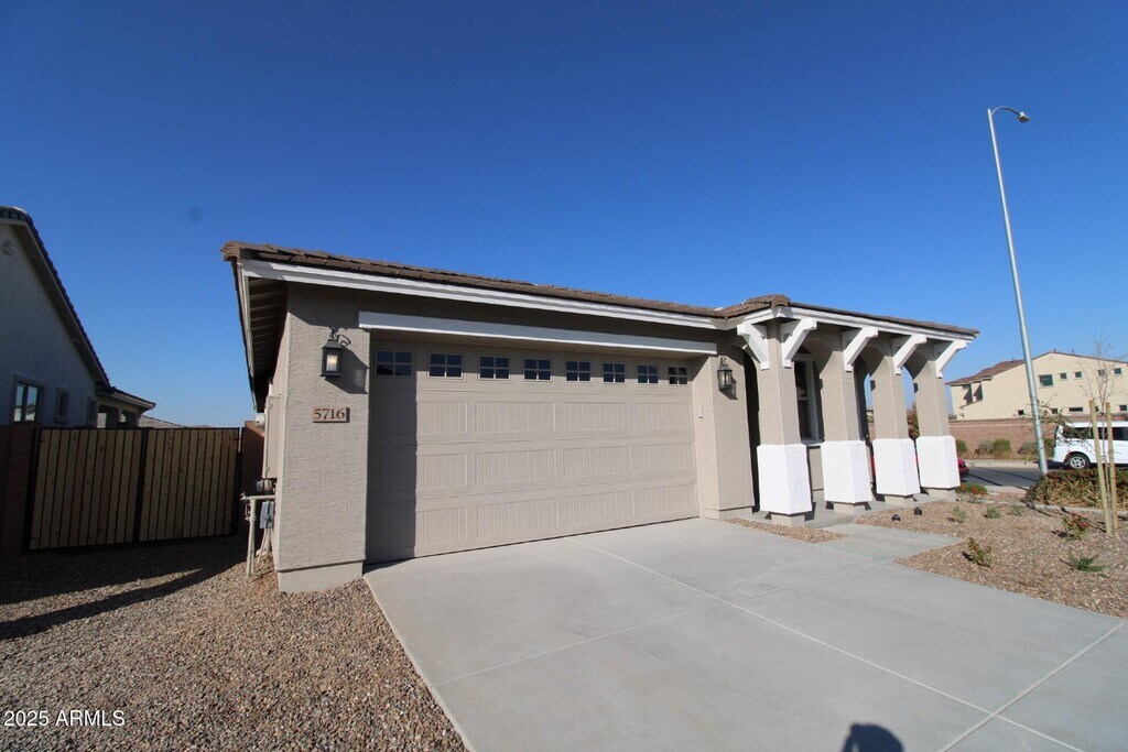 1st month rent free! 1,960 SQ FT! 4 bedroom,2.5 bath home in Mesa's La Mira community! $600 Credit Towards Move In Costs. 2023 build with modern upgrades + smart home features throughout. Desirable single story floor plan! Stunning eat-in kitchen with expansive breakfast bar. Kitchen opens to spacious living/dining area with sliding door patio access! Great for indoor/outdoor entertaining. Neutral interior with tile flooring in all the right places! This home offers 4 generously sized bedrooms + flexible den space. Den makes great home office/bonus room! Primary suite with full bath + walk-in closet. Enjoy a low up keep backyard with covered patio! 2 car garage. La Mira is a well maintained community with community pool,playgrounds,& biking/walking trails! Great Mesa location with