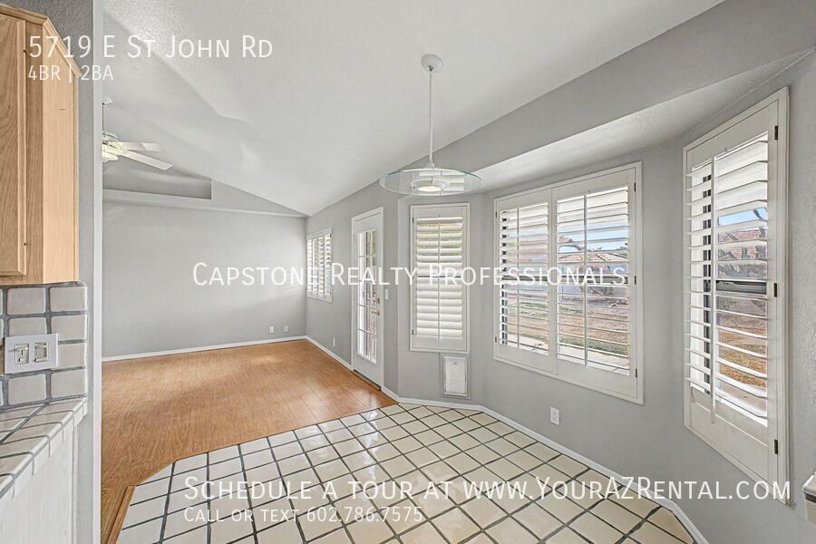 There is currently a 4 Bed 2 Bath Home for rent with 1,940 sq ft listed at 5719 E St John Rd. It is Available April 7, 2026.