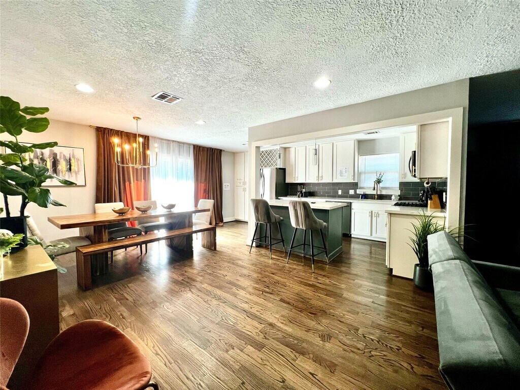 House remodeled mid-century modern home in a prime Houston location! Taken down to the studs and rebuilt with new roof 2025,new electric service box in 2025,double pane windows,beautiful oak hardwood floors throughout the house,new front door to be installed in the next 30 days,landscaping sets the tone for an open-concept living and dining area. The custom kitchen features shaker cabinets and an island with white marbles counters —perfect for entertainment,laundry room in the garage. The primary suite includes recess lighting and a spa-like bath with a large walk-in shower. Two secondary bedrooms are tucked away with a full bath nearby. Spacious backyard offers a plenty of room for a pool or custom outdoor retreat. MLS# 16418020