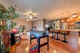 Rare, LARGEST Manhattan" Model 2444 Sq ft in Harmon Cove! Prepare to be impressed by this bright, expansive, 3 Bedrooms + Den/ 2.5 Bathrooms Plus 2 Oversized Walk-out terraces featuring a stunning open-concept layout with premium Brazilian hardwood floors throughout. The main level is an entertainer’s dream, offering a cathedral-ceiling living room with a wood-burning fireplace, formal dining area, Powder room, and a massive Den/ Family room with a closet (can be used as Office or kids play area). The custom gourmet kitchen serves as the heart of the home, boasting an oversized island, granite countertops, SS appliances, and tiled backsplash. Step out through glass sliders to a huge private terrace perfect for entertaining, BBQs & relaxing. Upstairs, the lavish Primary Suite features a walk-in closet, private walk-out terrace, and a spa-like bath with a soaking tub, separate shower, and your own private Sauna. Two additional spacious bedrooms, a full bath, and a seperate full sized washer dryer/ laundry complete this level. Tech & efficiency upgrades include 2-zone HVAC (10 yrs old) with Nest thermostats, tinted balcony sliders for privacy/efficiency, and a dedicated Level-2 EV charging station. Tons of closets, covered parking for 3-4 cars and a large storage room at the carport. Gated community offers lush green landscaping, private kayak marina, 4 miles of paved scenic riverfront trails for jogging/walking with benches for relaxing and duck/bird watching, adds to this luxury resort style amenities - gate/guard house for entry, pool with bar/cafe, lighted tennis/basketball courts, clubhouse, kids playground, and so much more. Bus stop on site with shuttle buses to Secaucus Junction and buses to Port Authority / NYC. Great location with easy access to the NJ Turnpike, GS Parkway, Lincoln Tunnels, GW Bridge, and airports."